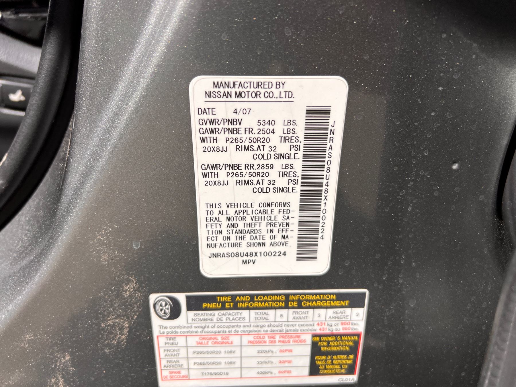 VIN:JNRASO8U48X100224