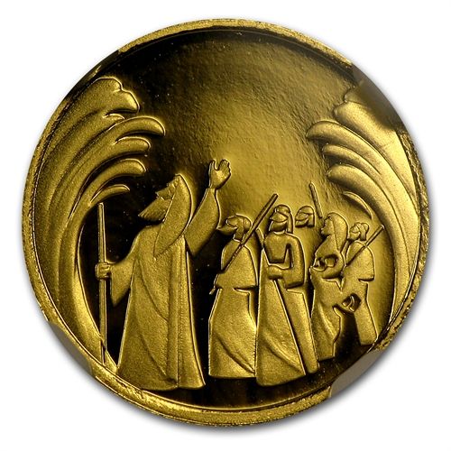 2008 Israel Parting of the Sea Smallest Gold Coin PF-70 **|**|** Year: 2008 ; Mint Mark: PF-70 UCAM ; Grade: n (Mem) ; Denomination: NIS 1 ; MSRP: $300