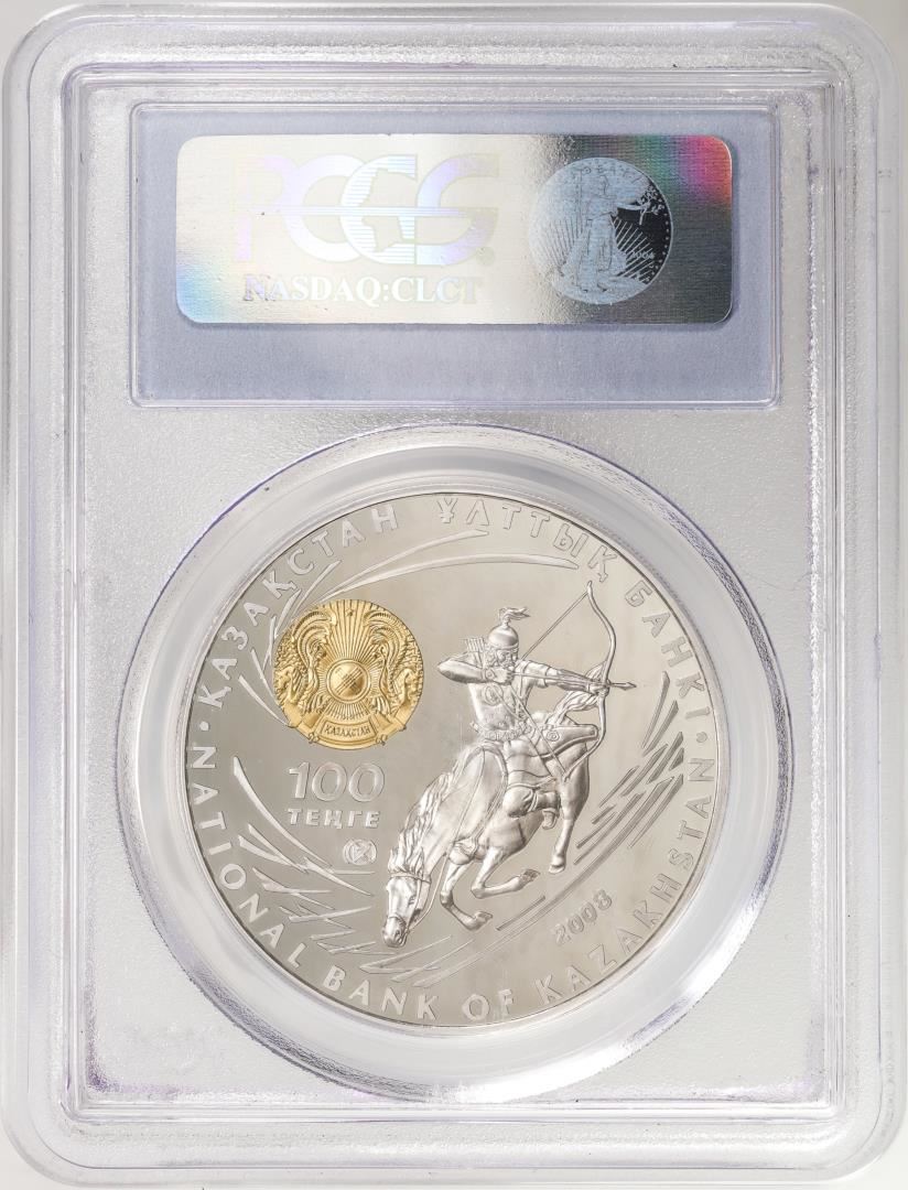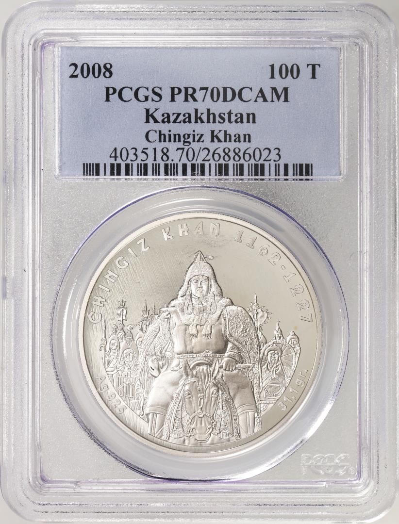 One 2008 Kazakhstan 100 Tenge Proof Chingiz Khan Silver Coin PCGS PR70DCAM. PCGS Graded.