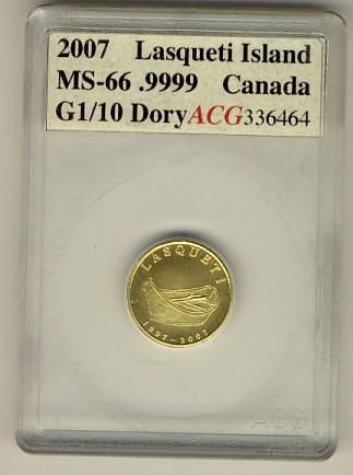 2008 Lasquiti Mint 1/10oz Gold Dory coin ACG MS66.