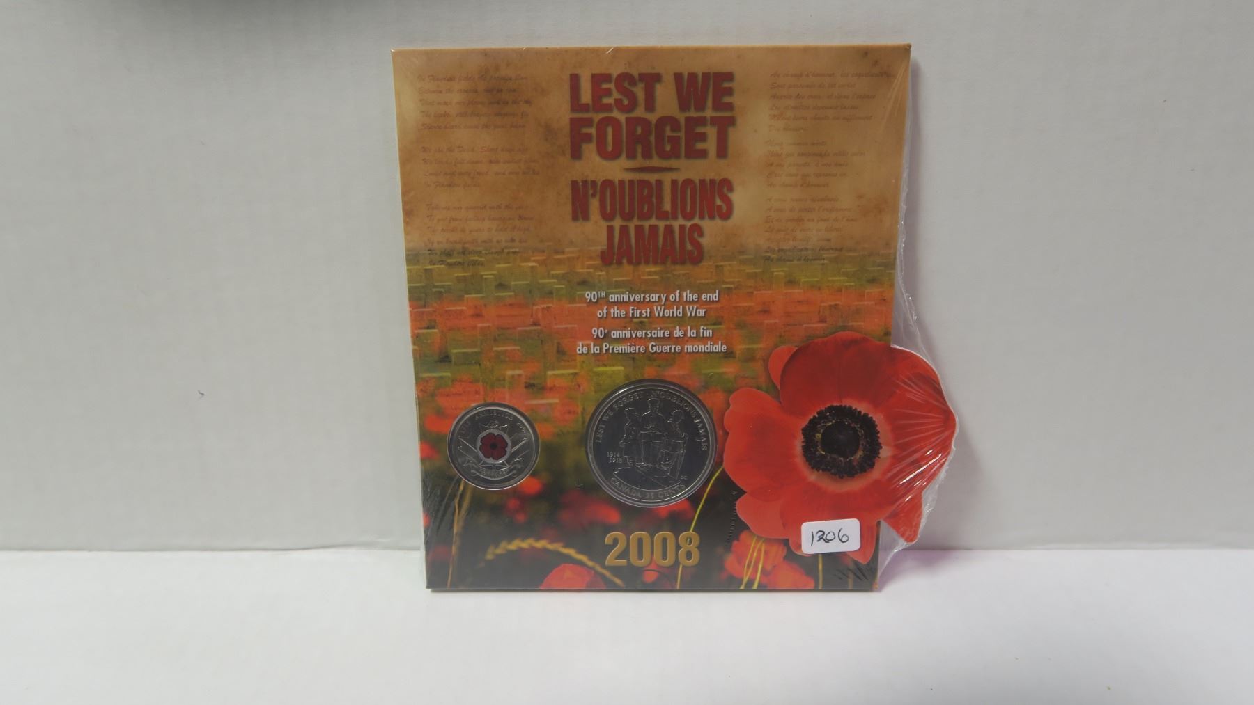 2008 Lest We Forget Colourized 2-coin 25 Cents Set. Specimen. Housed in its original unopened folder.