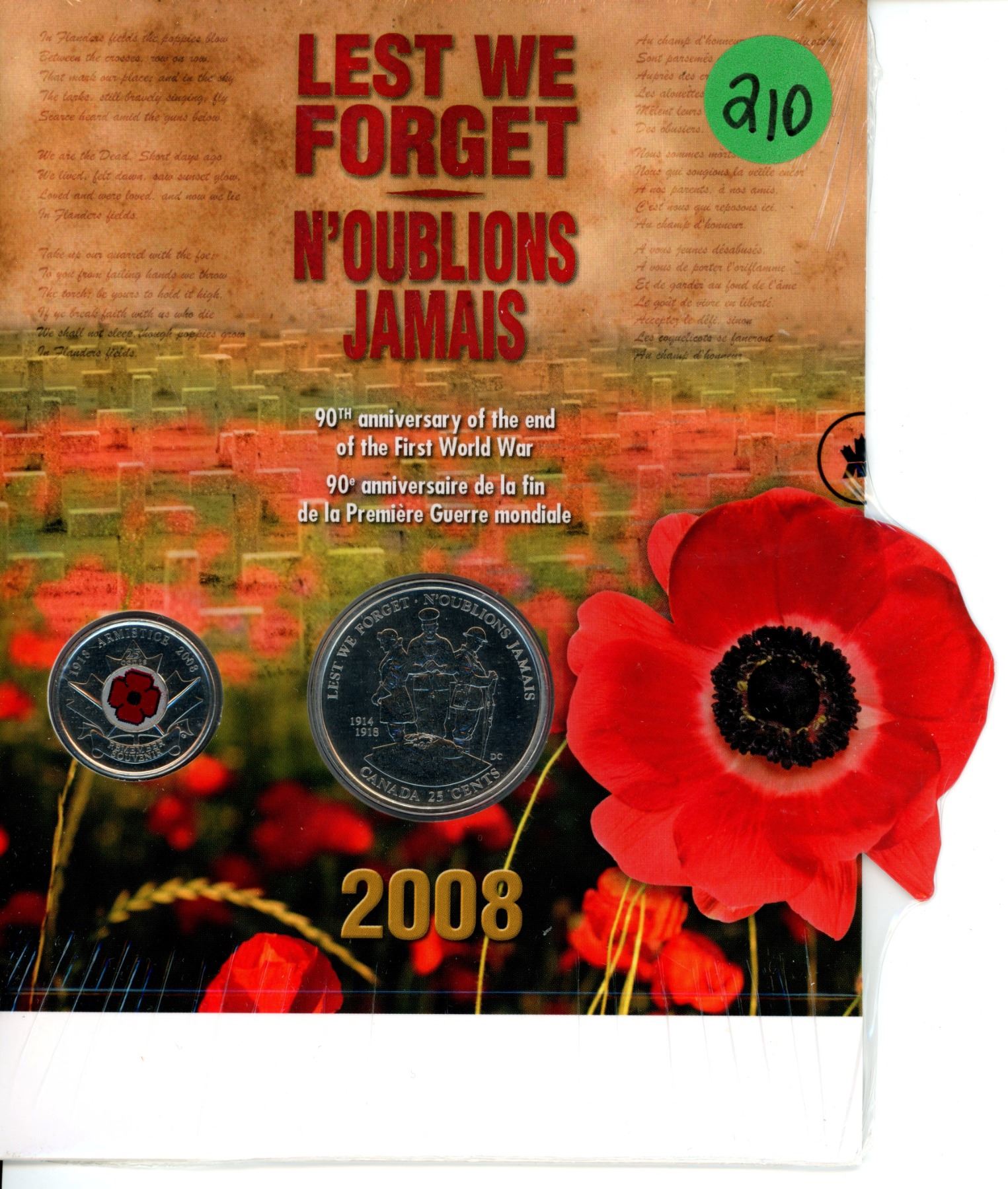 2008 Lest we Forget 90th Annv. WW1 Has large 25 Cent depicting Tomb of Unknown Soldier