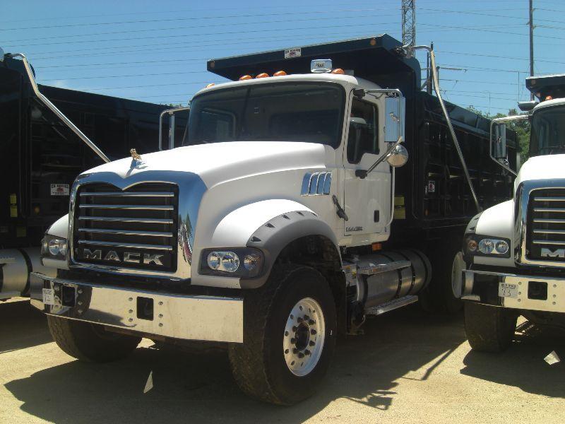 2008 MACK GU713 TRI-AXLE DUMP, S/N 1M2AX04C48M002371, MP7-405 HP MACK ENG, 10 SPD TRANS, 44K REARS, 18K FRONT, A/C, P/S, ENGINE BRAKE, DOUBLE FRAME, 16' OX DUMP BODY, ELEC TARP, AIR TAILGATE, 11R22.5 REAR TIRES, 385/65R22.5 FRONT TIRES, DISC WHEELS, ODOMETER READING 9,931 MI (COUNTY OWNED)