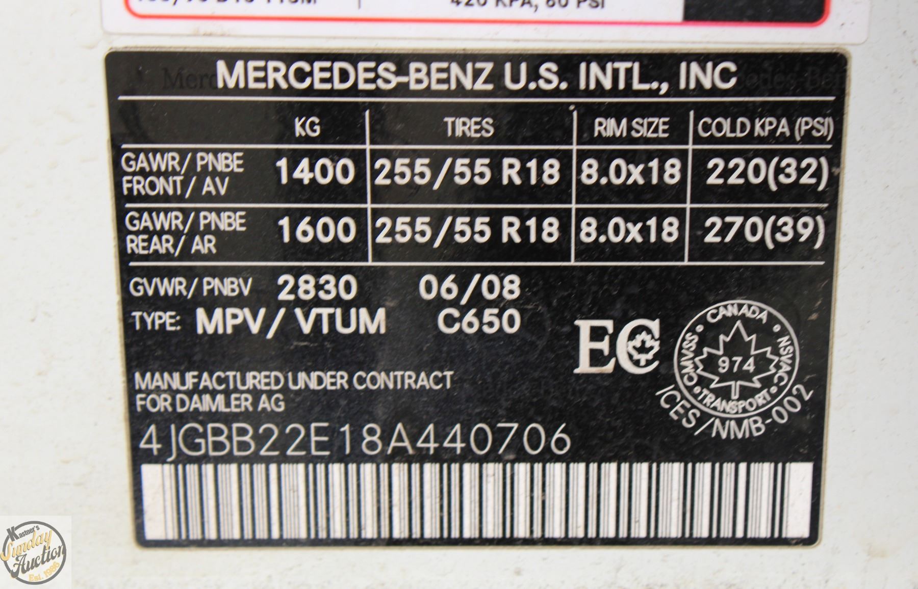 VIN: 4JGBB22E18A440706