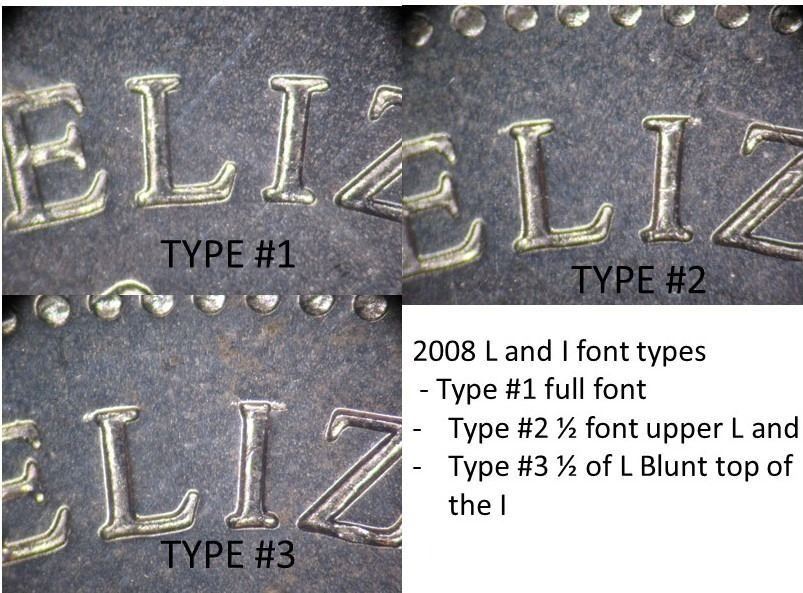 2008 MS66 THREE Varieties of the I in Elizabeth