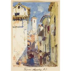 <B>DONALD TEAGUE (American, 1897-1991)</B></I><BR><I>View of Ponte Vecchio </B></I><BR>Watercolor on...