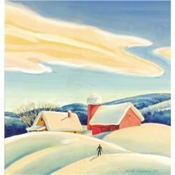 <B>DALE NICHOLS (American, 1904-1995)</B></I><BR><I>Farm in Winter</B></I>, 1950<BR>Watercolor on pa...