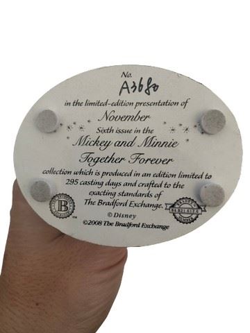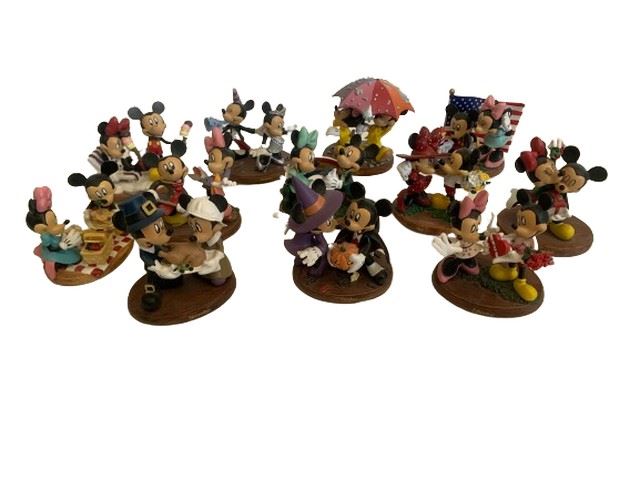 A collection of 12 Disney limited edition collectibles titled: Mickey and Minnie Together Forever a collection which is produced in a limited edition to 295 casting days and crafted to the exact standards of the Bradford exchange, 2008. Each collectible is numbered and labeled by the month of the year and the number of issue in the collection. In this lot there is one for every month from January to December.