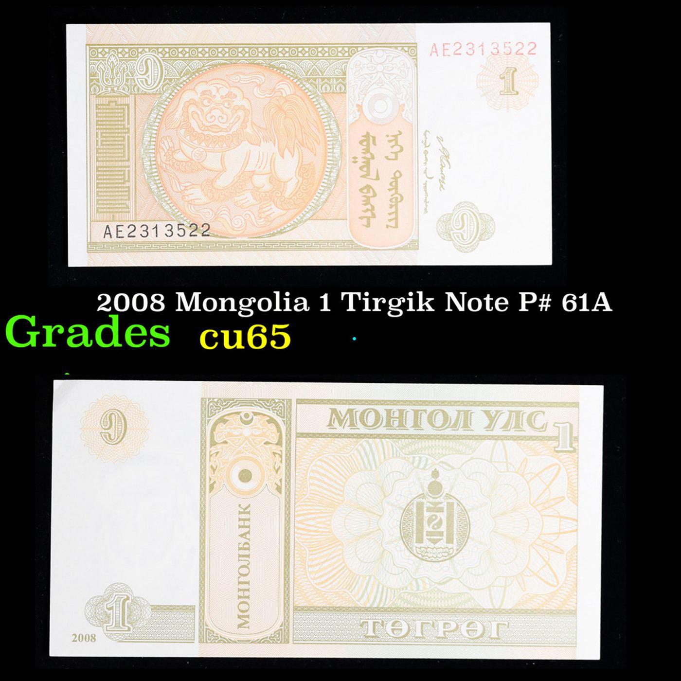 2008 Mongolia 1 Tirgik Note P# 61A Grades Gem CU.