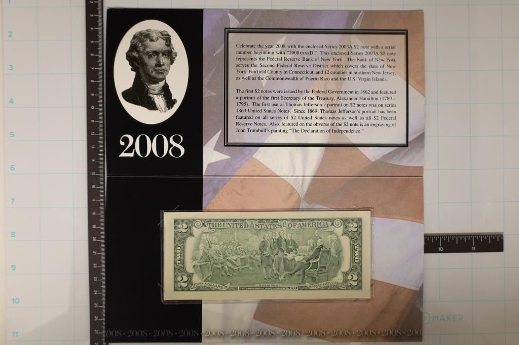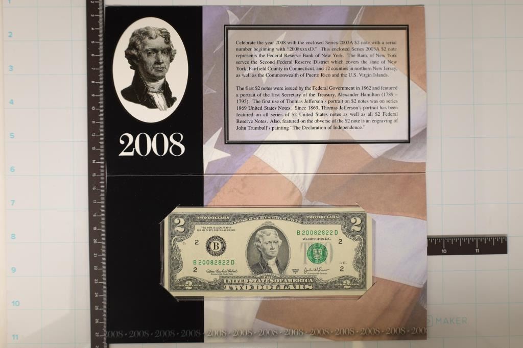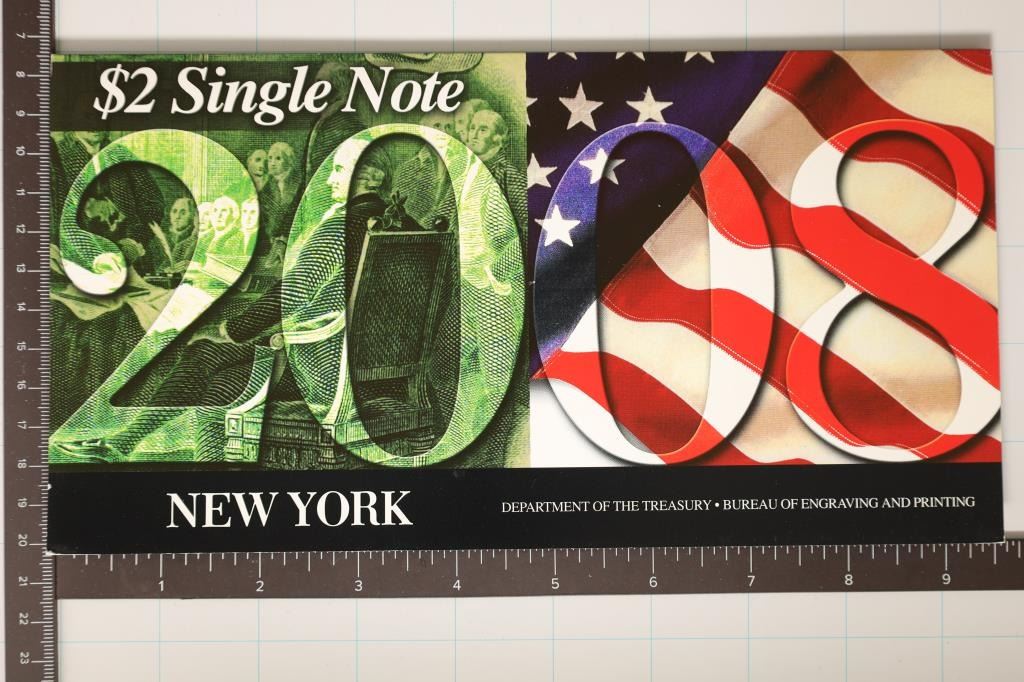 FEDERAL RESERVE NOTE, SERIAL STARTS WITH 2008, CRISP UNC, IN ORIGINAL BEP PACKAGING