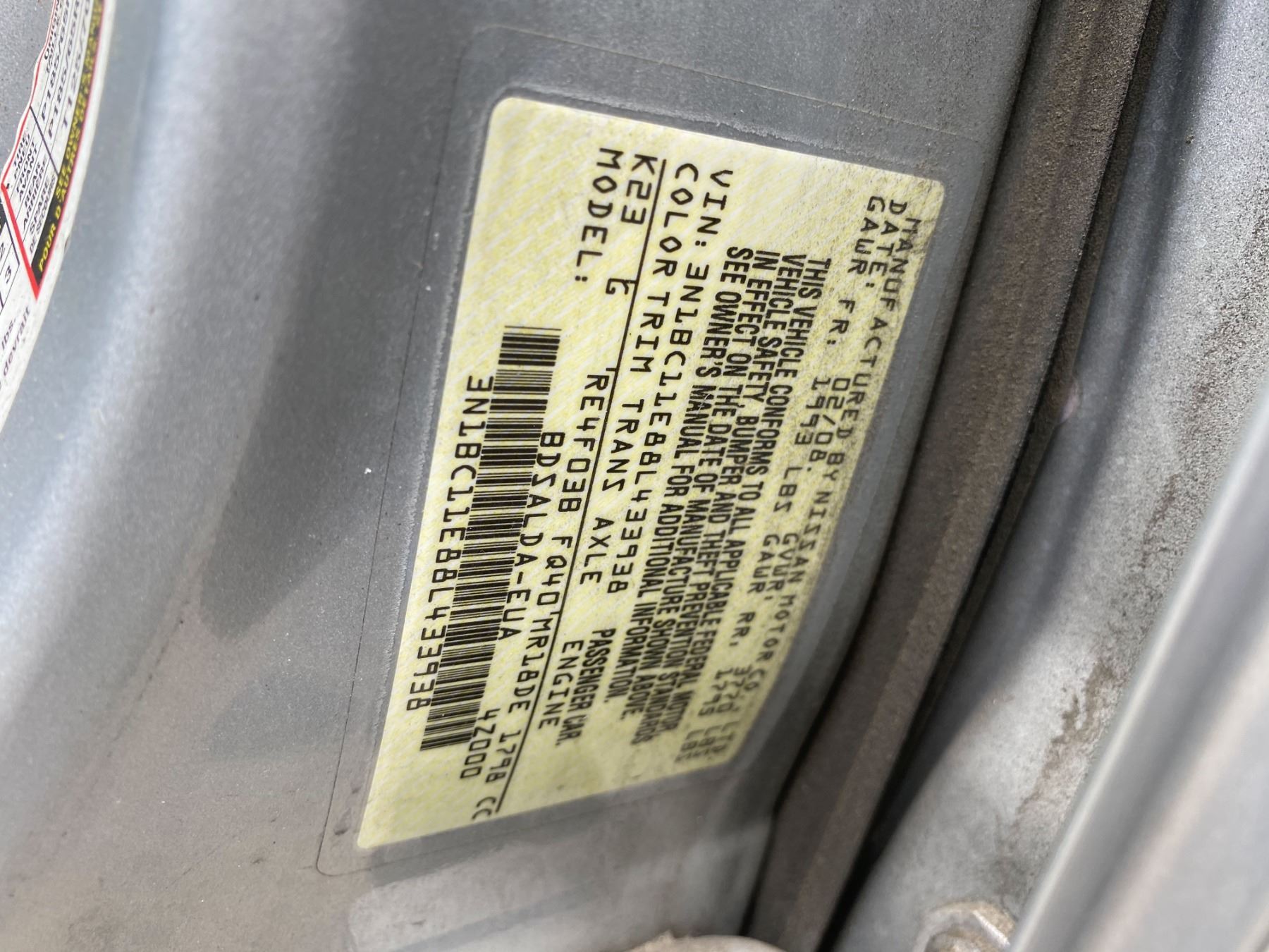 VIN:3N1BC11E88L433938