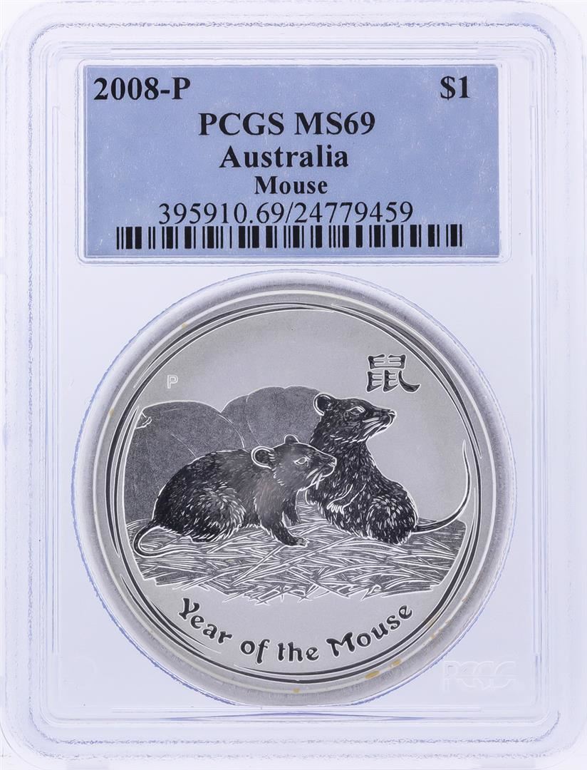 One 2008-P $1 Australia Year of the Mouse Silver Coin PCGS MS69. PCGS Graded.