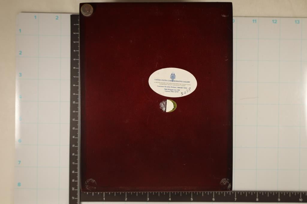 IN HARD PLASTIC CASE WITH WOOD LIKE CLAMSHELL BOX. HINGE ON BOX IS DAMAGED