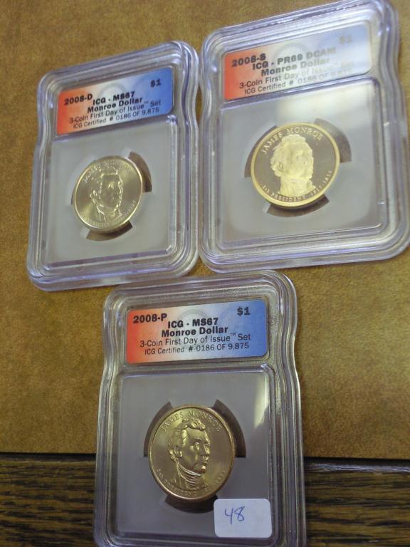 2008-P/D/S MONROE DOLLARS ICG MS67 1ST DAY ISSUE