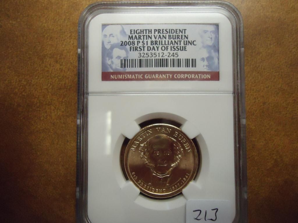 2008-P VAN BUREN DOLLAR NGC BU 1ST DAY ISSUE