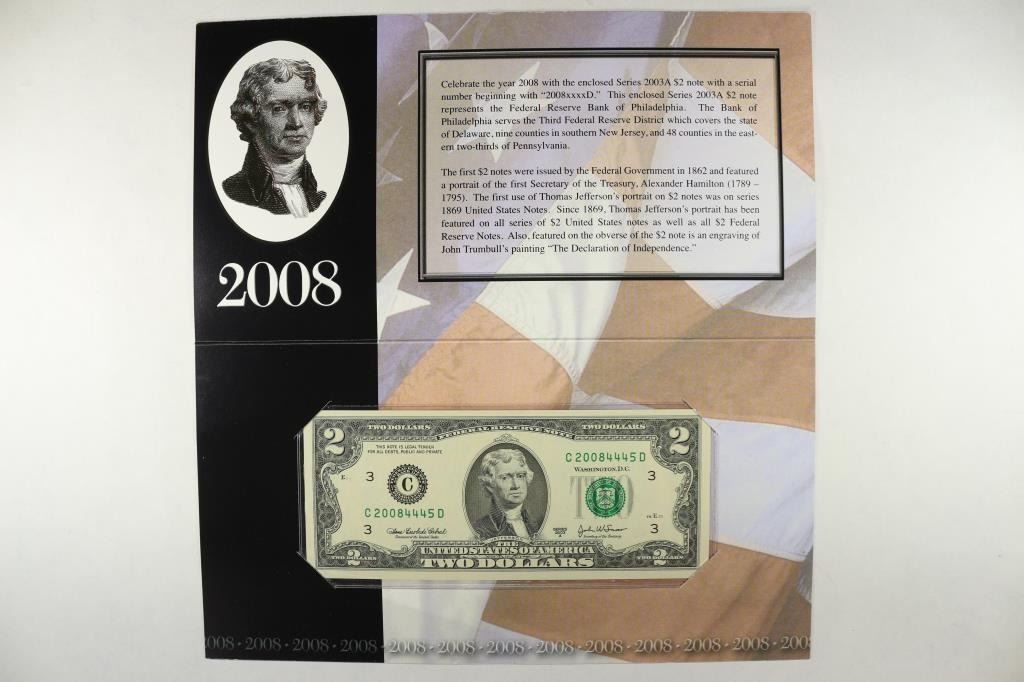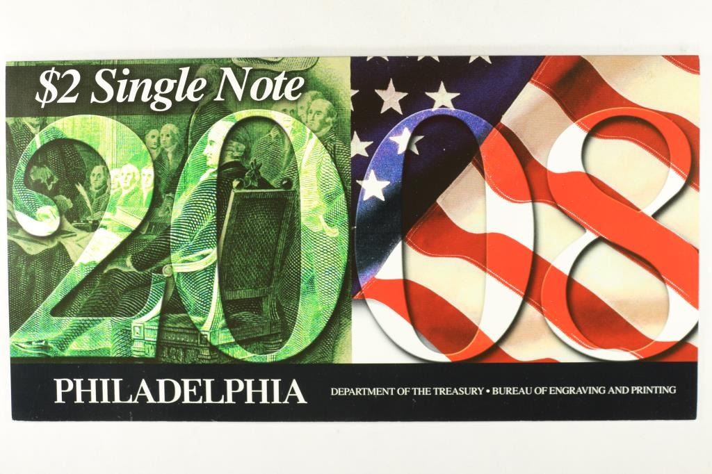 SERIAL NUMBER STARTS WITH 2008, CRISP UNC, ORIGINAL BEP PACKAGING