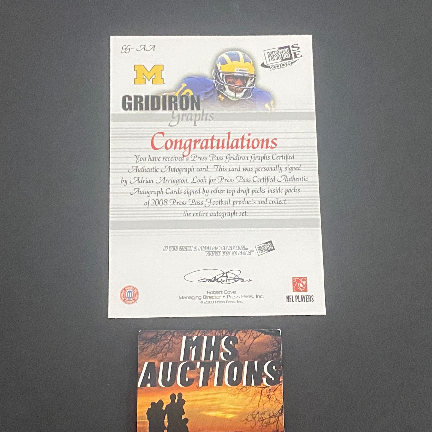 2008 PRESS BOX FOOTBALL AUTOGRAPH ADRIAN ARRINGTON MICHIGAN AUTOGRAPH CARD