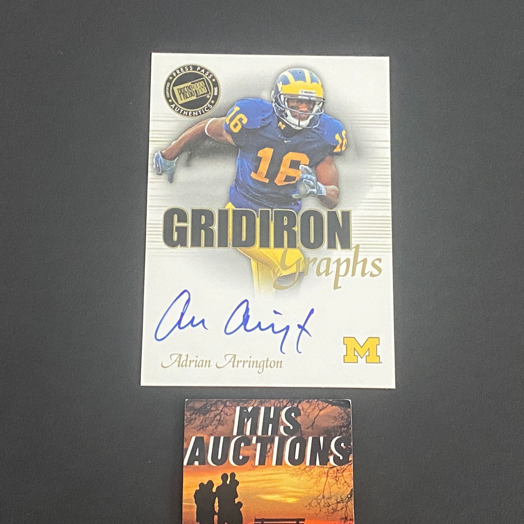 2008 PRESS BOX FOOTBALL AUTOGRAPH ADRIAN ARRINGTON MICHIGAN AUTOGRAPH CARD