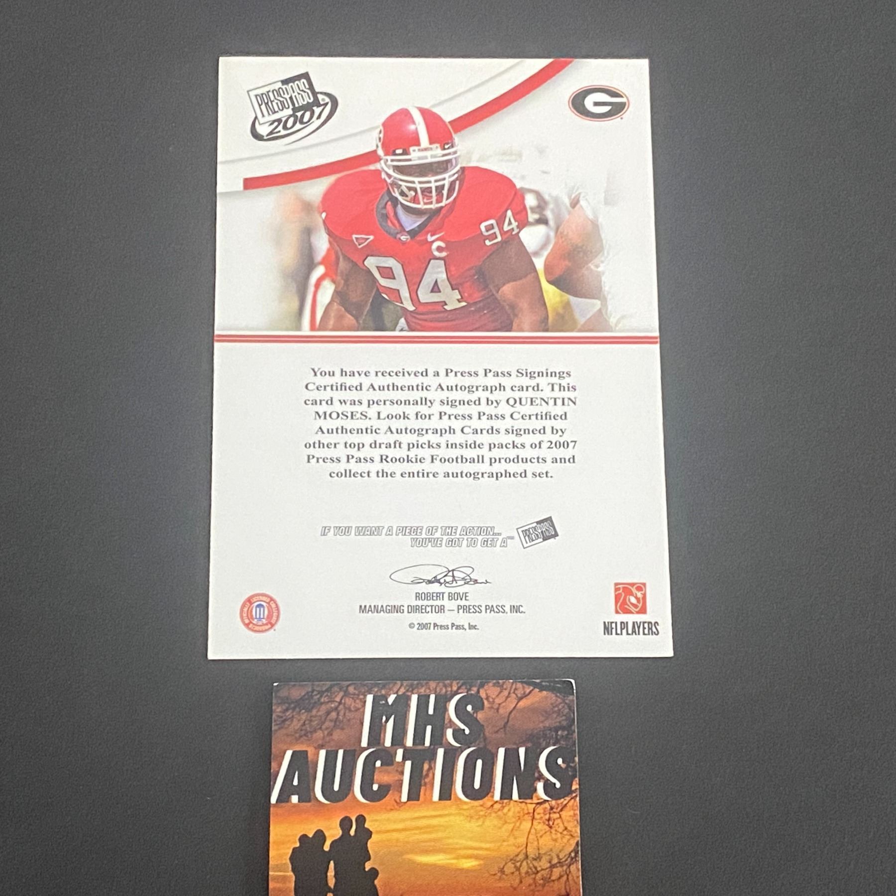 2008 PRESS BOX FOOTBALL AUTOGRAPH QUENTIN MOSES GEORGIA AUTOGRAPH CARD