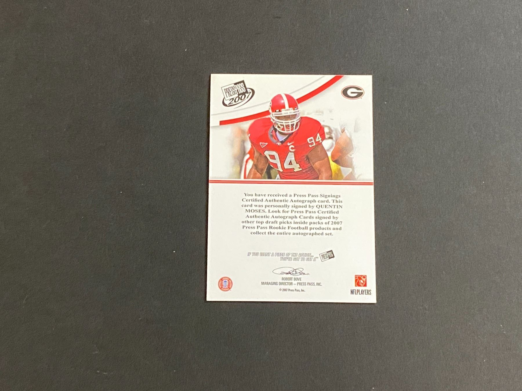 2008 PRESS BOX FOOTBALL AUTOGRAPH QUENTIN MOSES GEORGIA AUTOGRAPH CARD