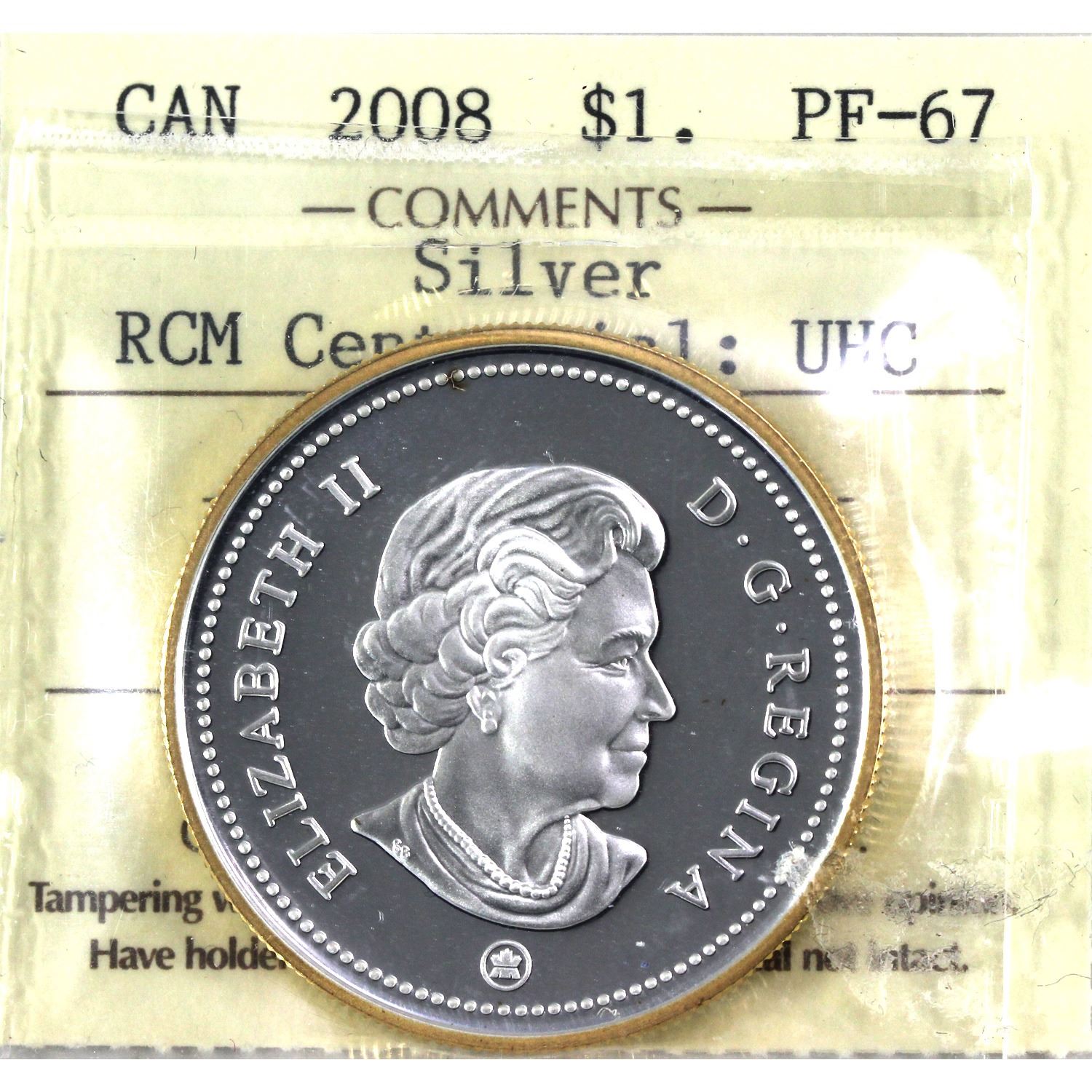 2008 RCM Centennial, Canada $1, ICCS Certified PF-67, UHC. 25.18g Sterling Silver. Contains appx 0.748oz Pure Silver!
