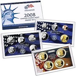 2008-S Proof Set - Includes Superb 2008 Proof Examples Of All Four Presidential Dollars, All Five State Quarters, Lincoln Cent, Jefferson Nickel, Roosevelt Dime, Kennedy Half and Sacagawea Dollar!