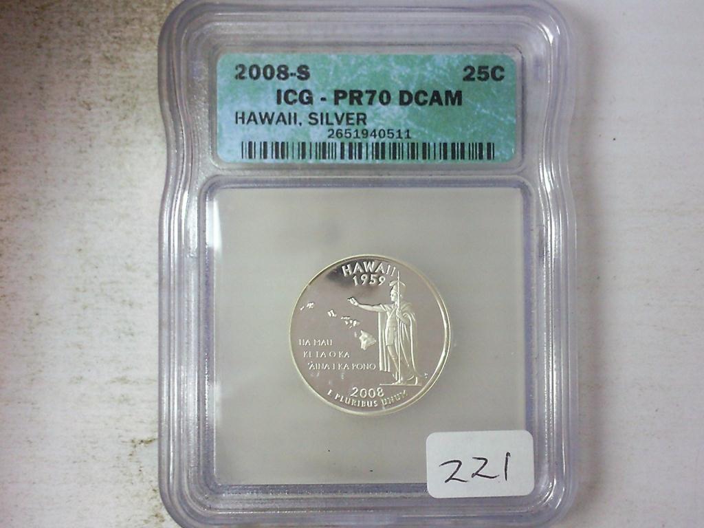 2008-S SILVER HAWAII QUARTER ICG PR70DCAM