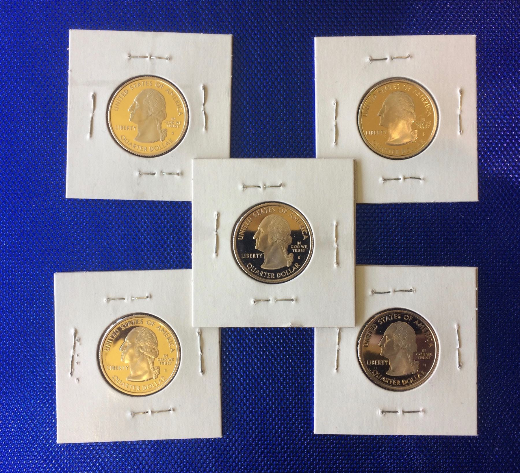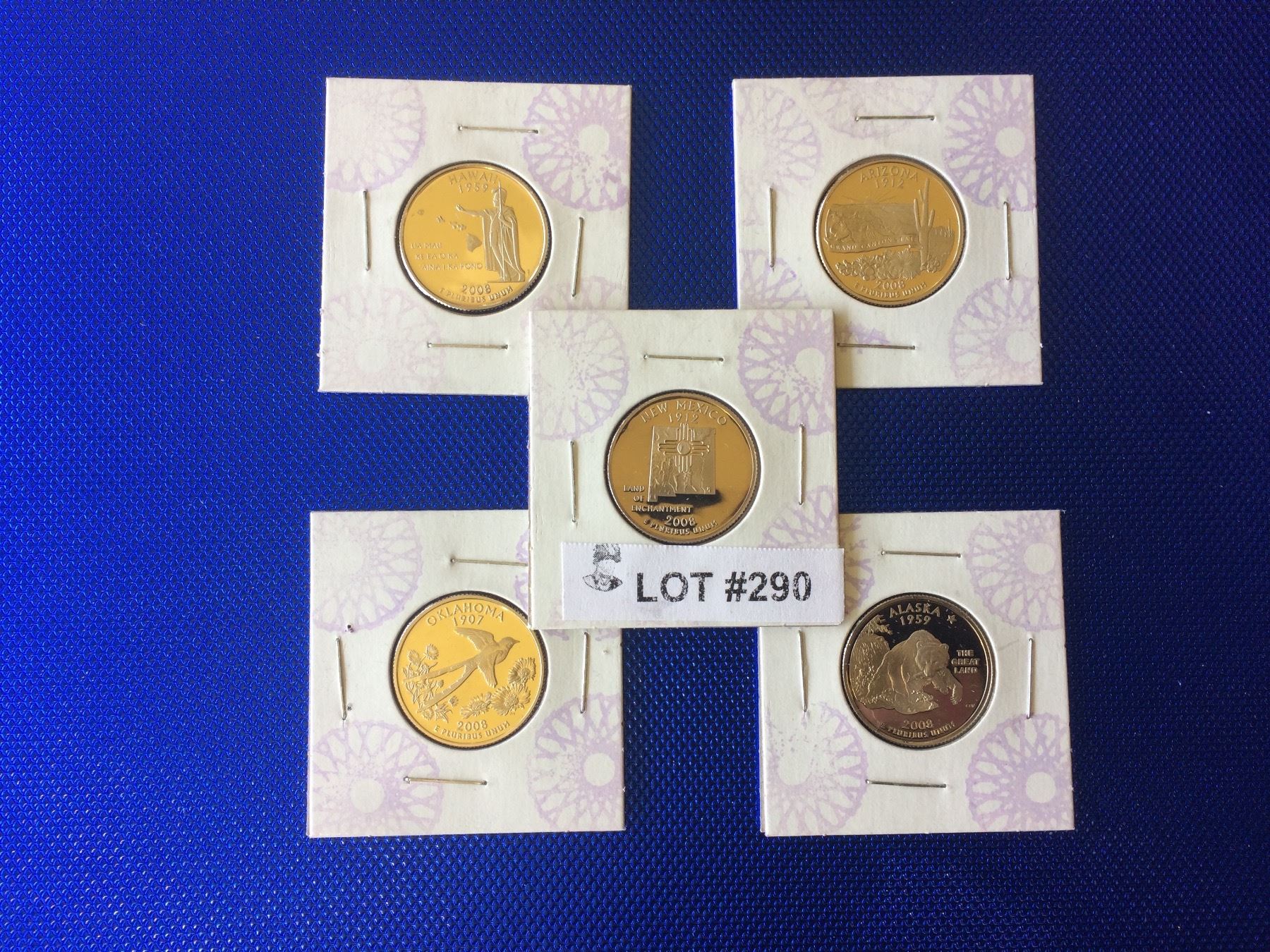 2008 S SILVER PROOF AMERICAN QUARTER: HAWAII, ALASKA, OKLAHOMA, ARIZONA, NEW MEXICO. LOT OF 5 COINS.