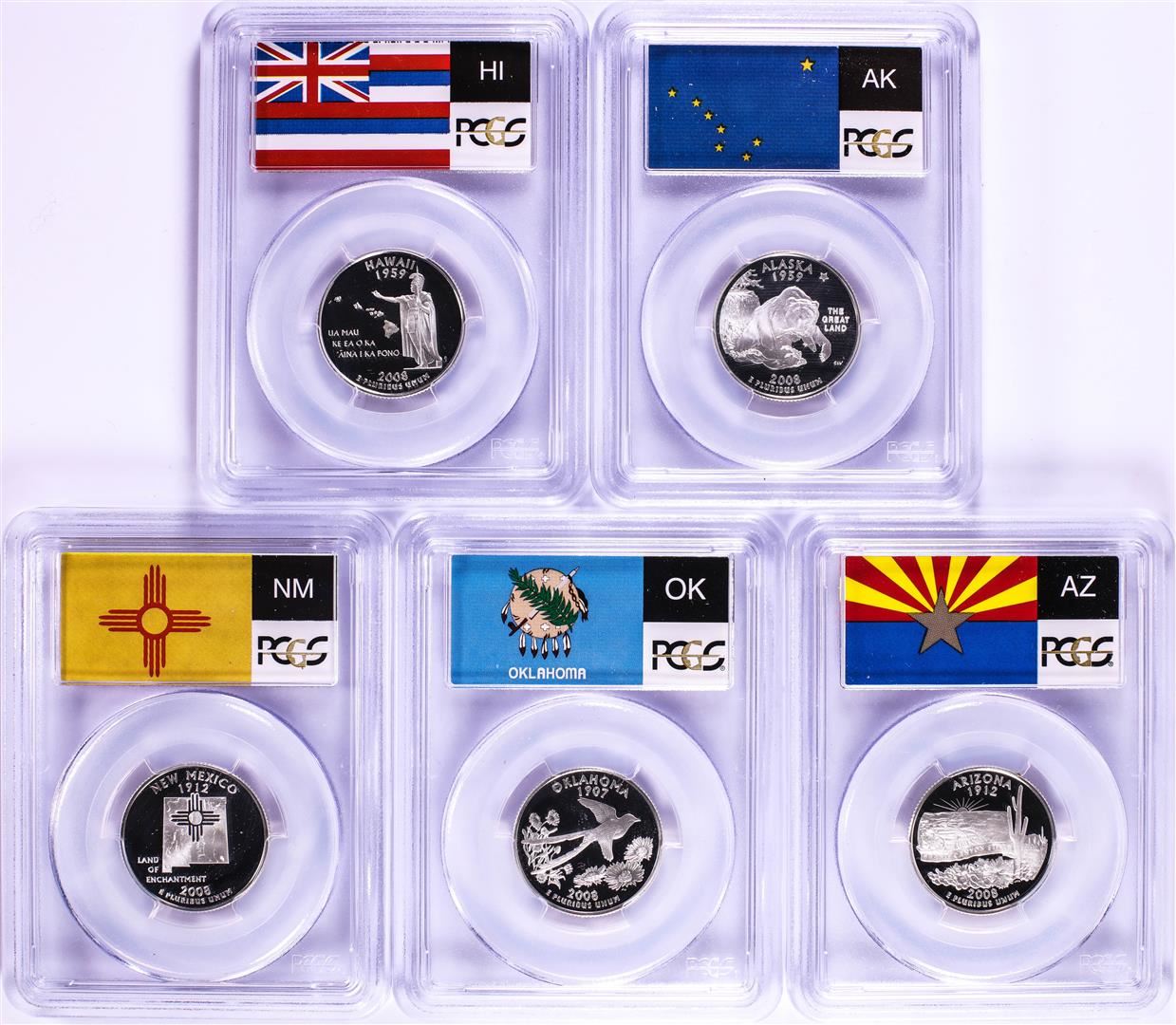 One 2008-S Silver Proof State Quarter (5) Coin Set PCGS PR69DCAM. PCGS Graded.