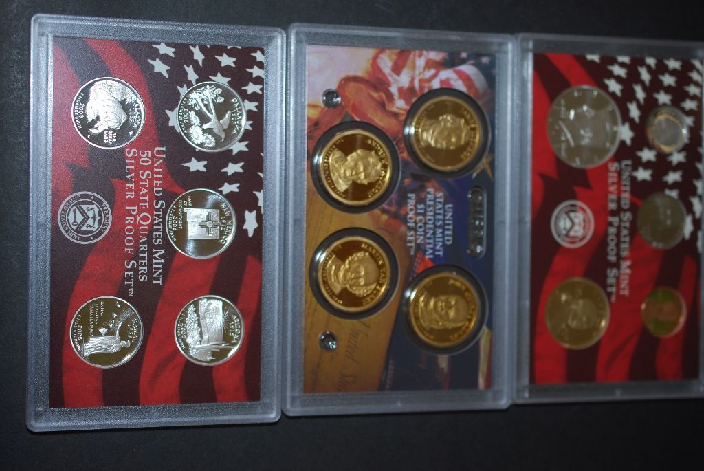2008-S US Mint Silver Proof Set, US Mint Silver State Quarter Proof Set & US Mint Presidential $1 Proof Set With COA Included; EST. $70-80