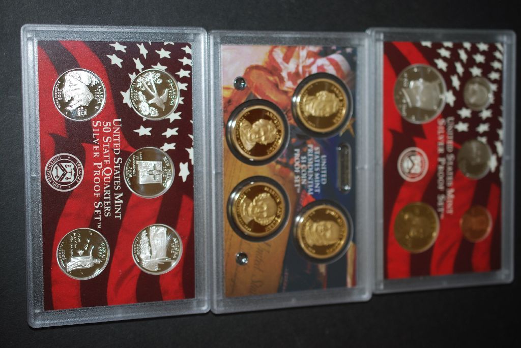 2008-S US Mint Silver Proof Set, US Mint State Quarter Silver Proof Set & US Mint Presidential $1 Proof Set With COA Included; EST. $60-90