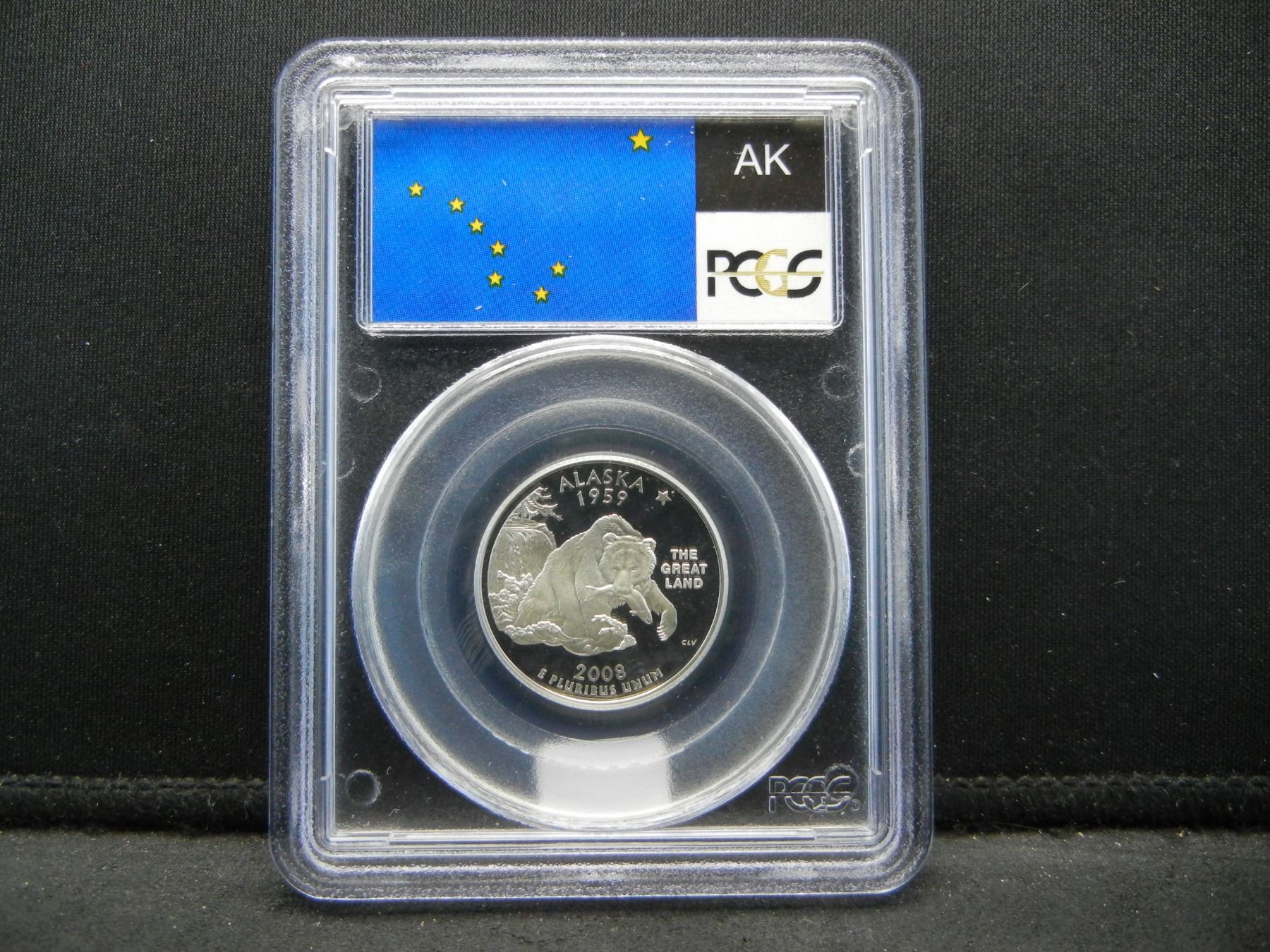 2008-S silver Alaska State Quarter. PCGS slabbed as PR 69 DCAM.