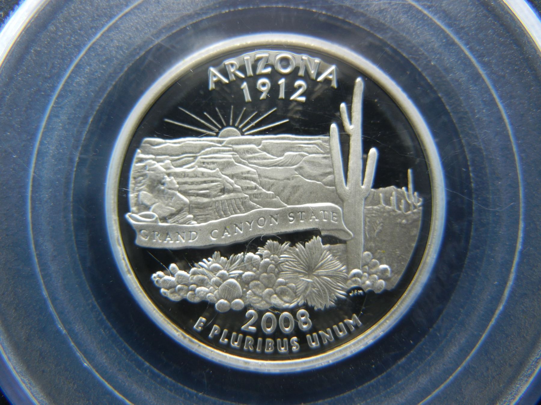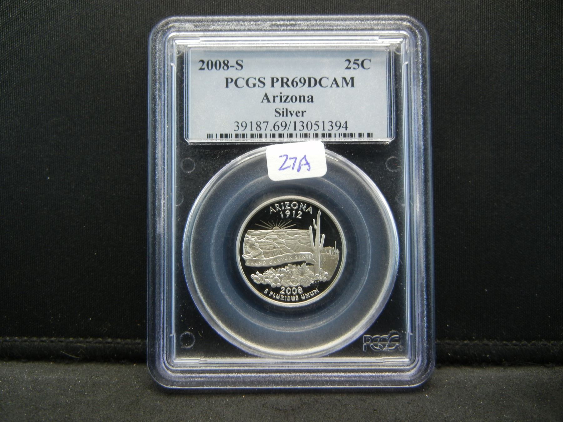 2008-S silver Arizona State Quarter. PCGS slabbed as PR 69 DCAM.