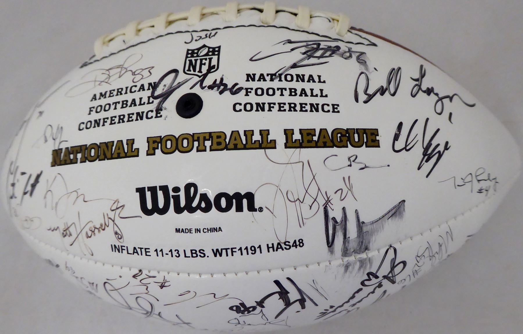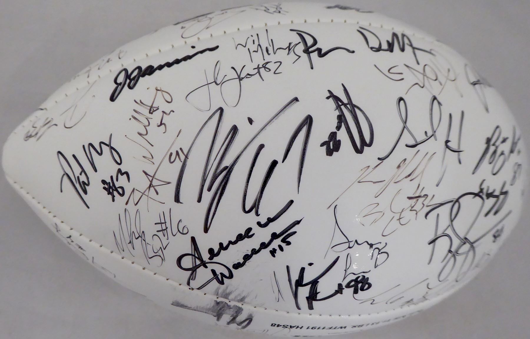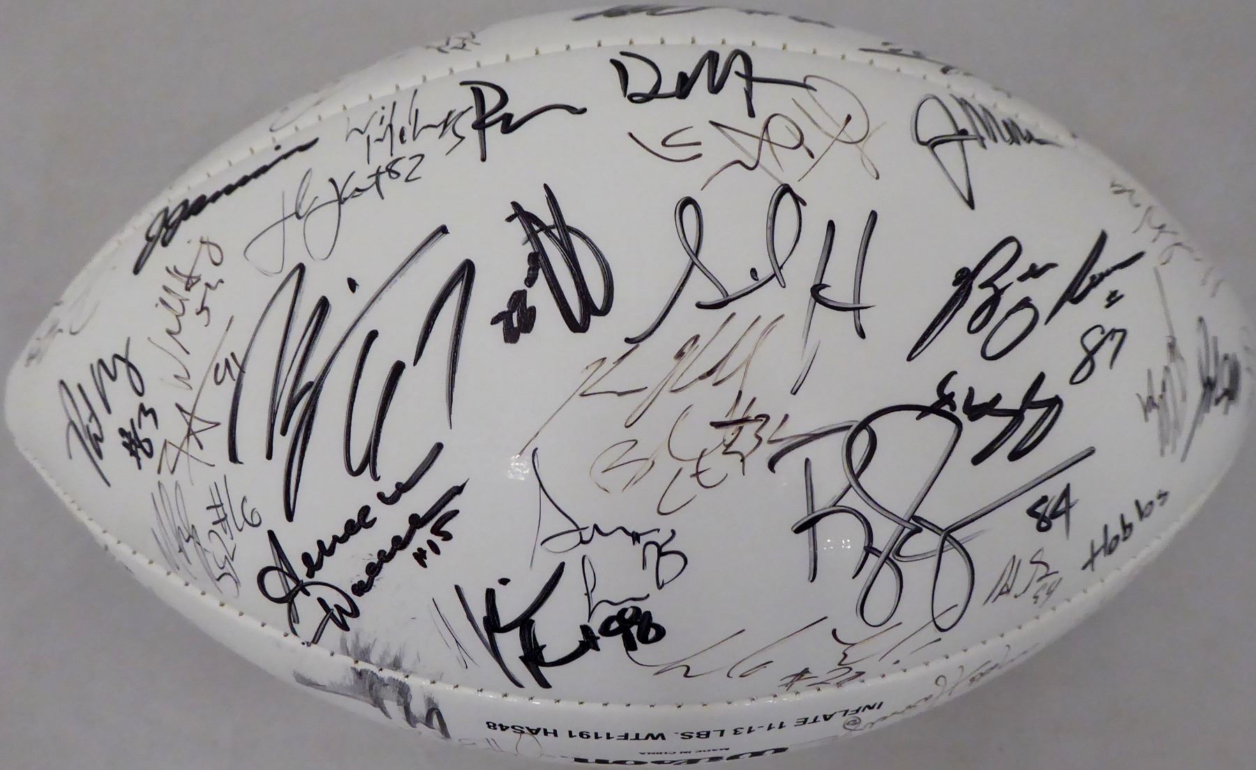 This is a Wilson Logo Football that has been hand signed by 60+ members of the 2008 Seattle Seahawks Team. Signatures include: Matt Hasselbeck, Walter Jones, Marcus Trufant, Lofa Tatupu, Bobby Engram, Jordan Babineaux, John Carlson, Ben Obamanu, Jon Ryan & Deion Branch. NOTE: A couple of the signatures are light or smudged, as shown in the pictures. This item is guaranteed to pass any third party authentication company including Beckett, PSA/DNA, & JSA authentication.