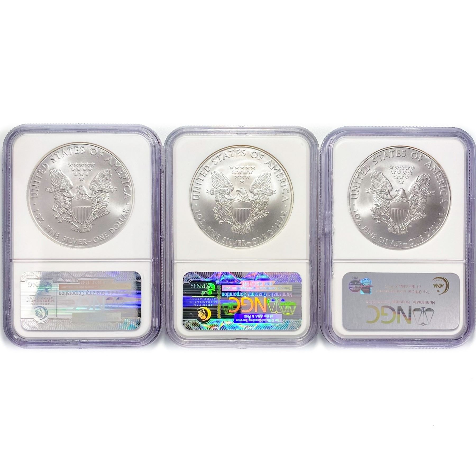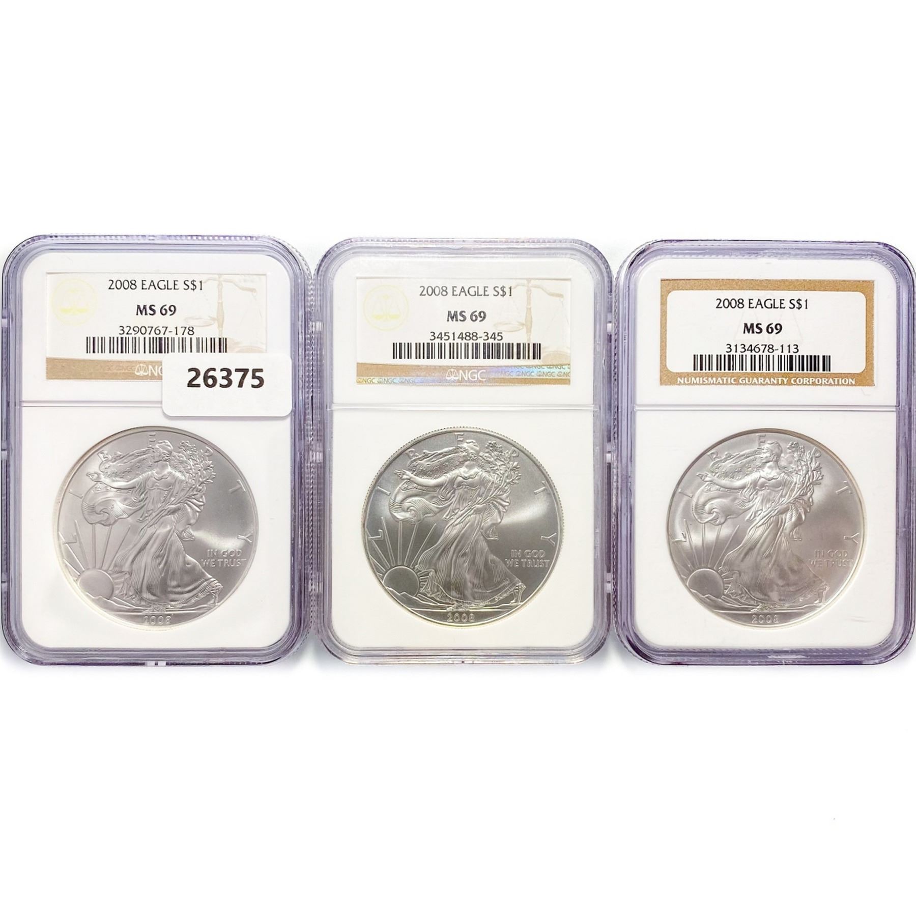 2008 Set (3) American Silver Eagles NGC MS69