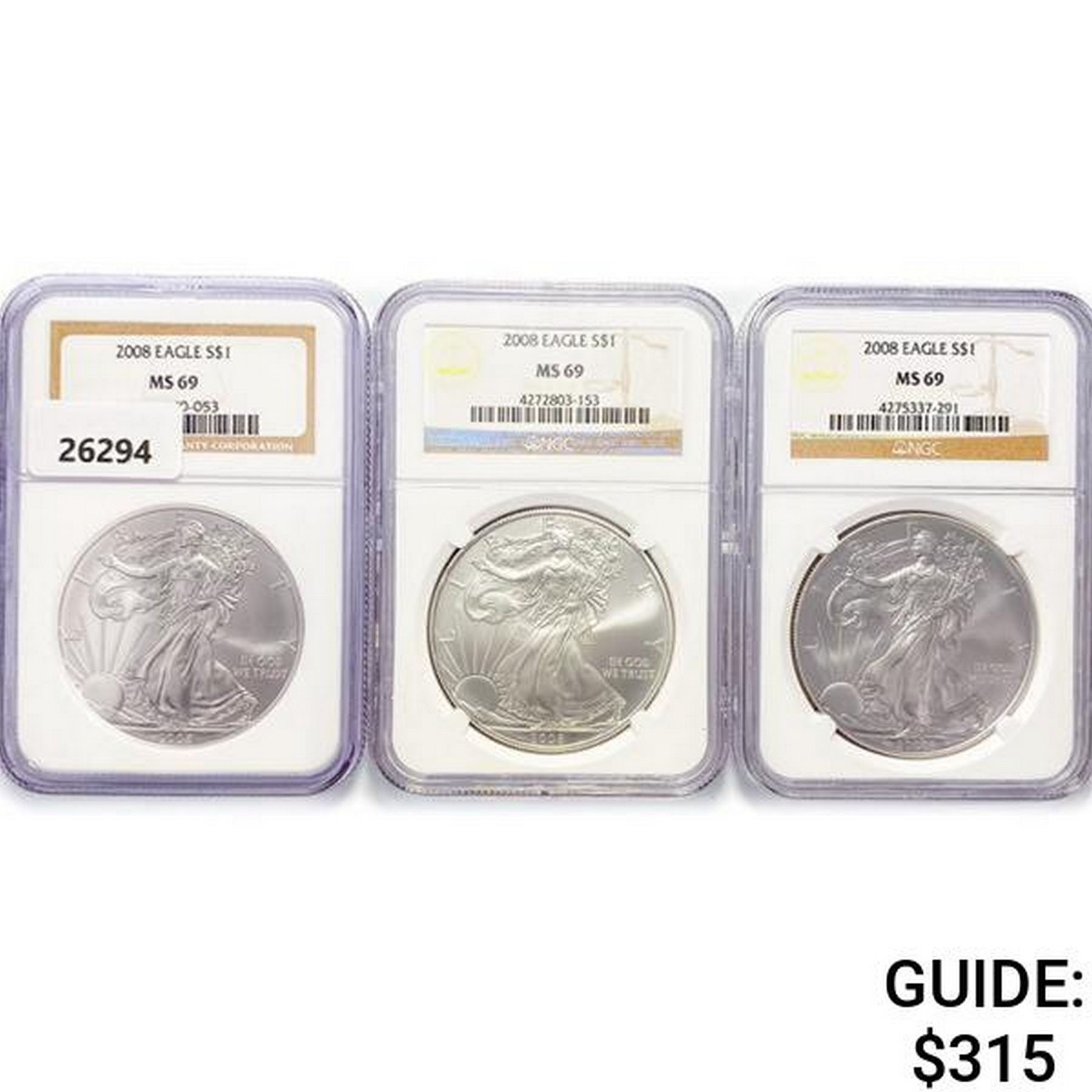 2008 Set [3] American Silver Eagles NGC MS69