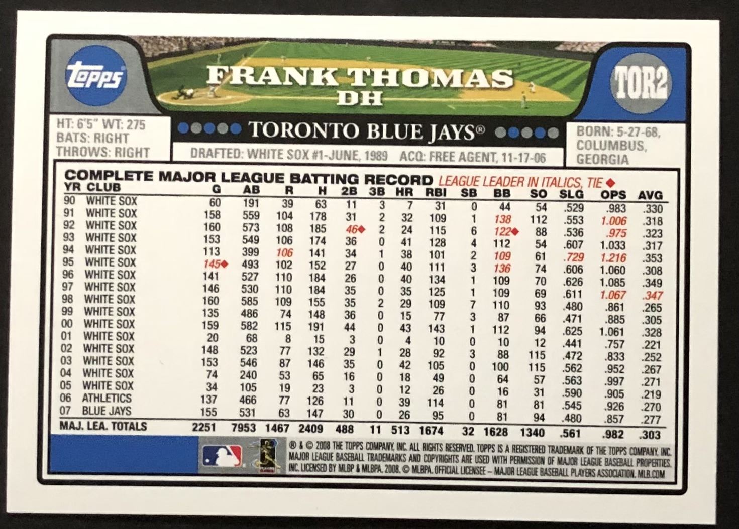 Card #TOR2 MLB, baseball, hall of fame