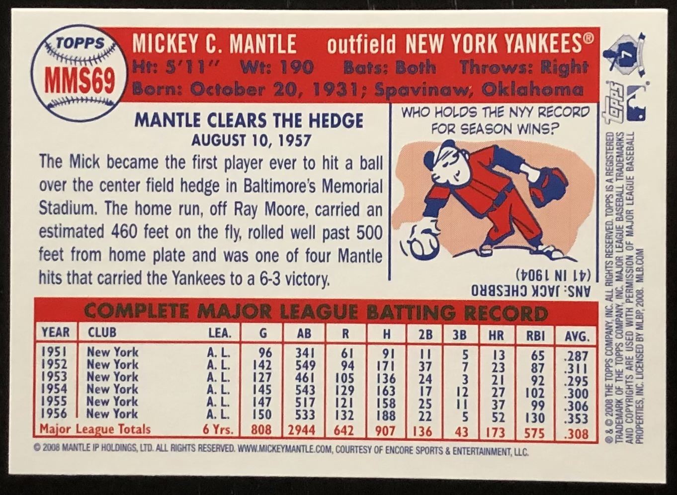 Card #MMS69 MLB, baseball, hall of fame