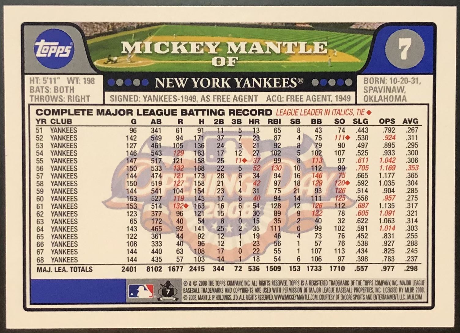 Card #7 MLB, baseball, hall of fame