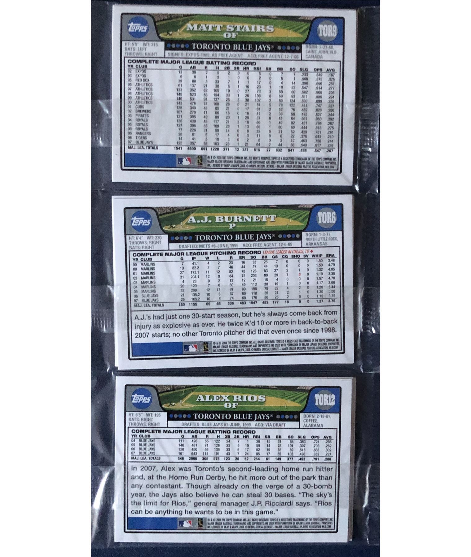 Each pack 3 cards MLB, regional
