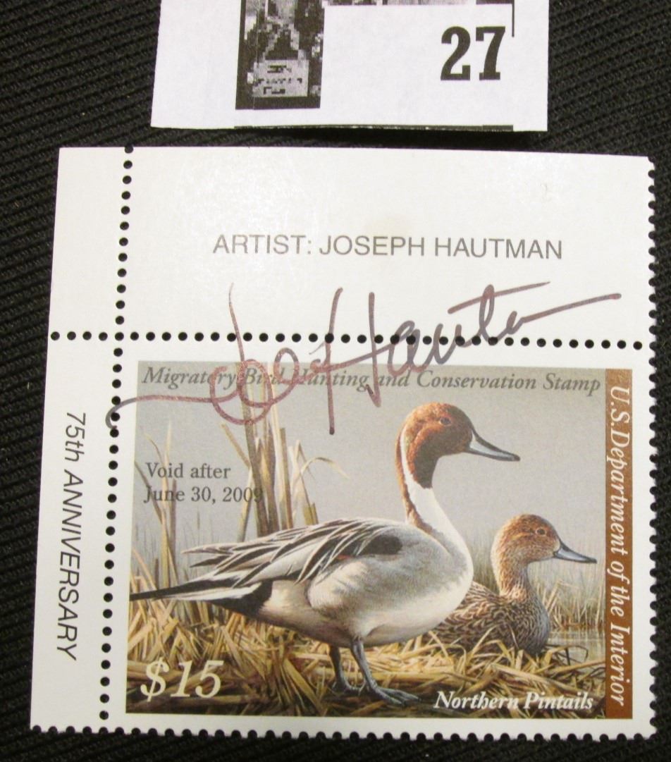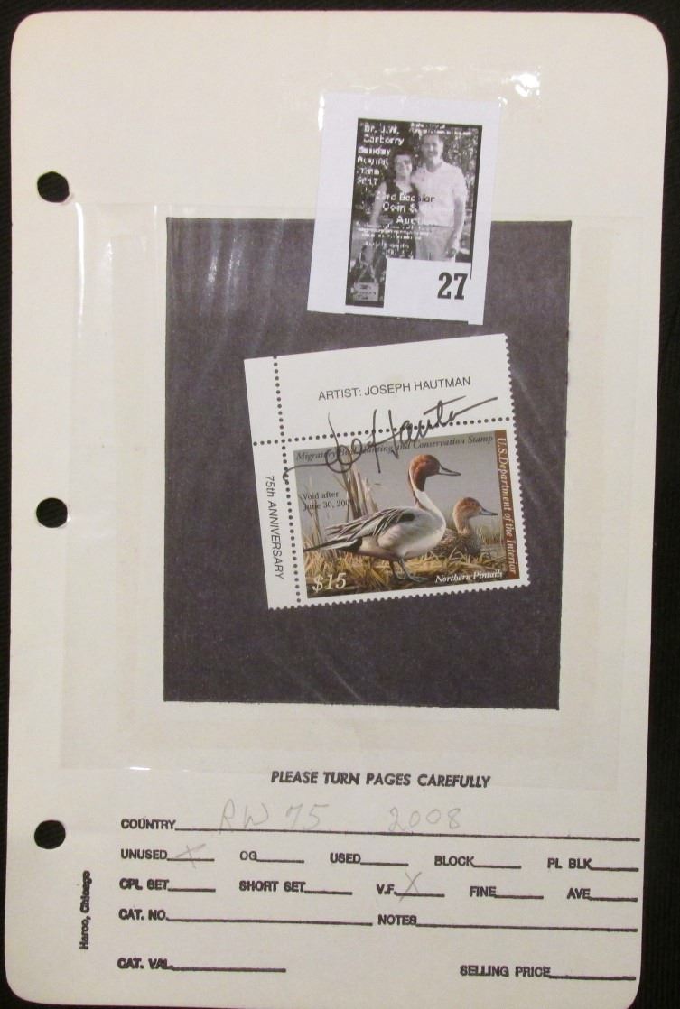 2008 U.S. Department of the Interior Migratory Bird Hunting Stamp, RW#75, OG, not hinged, VF, Signed by the Artist "Joseph Hautman".