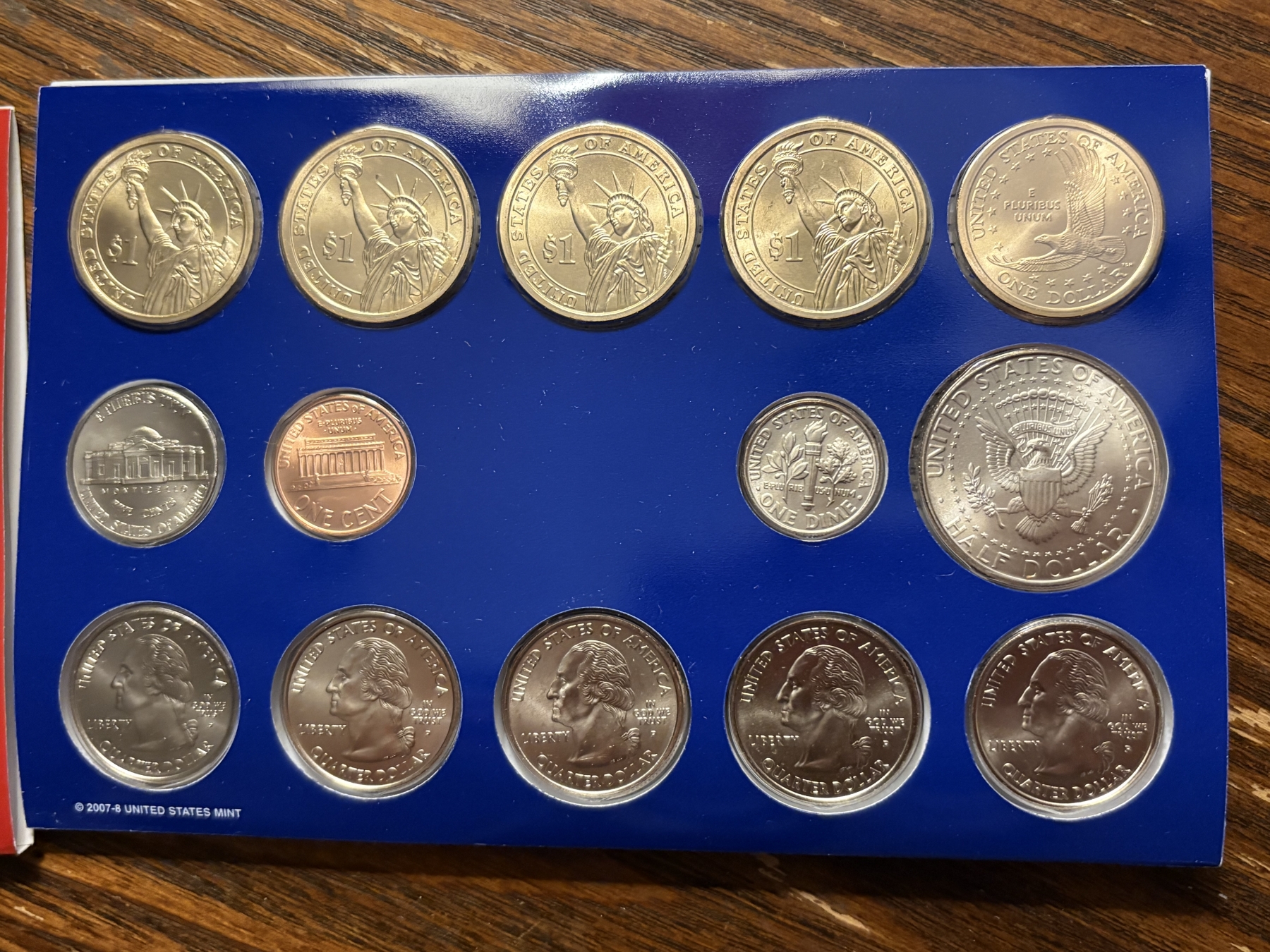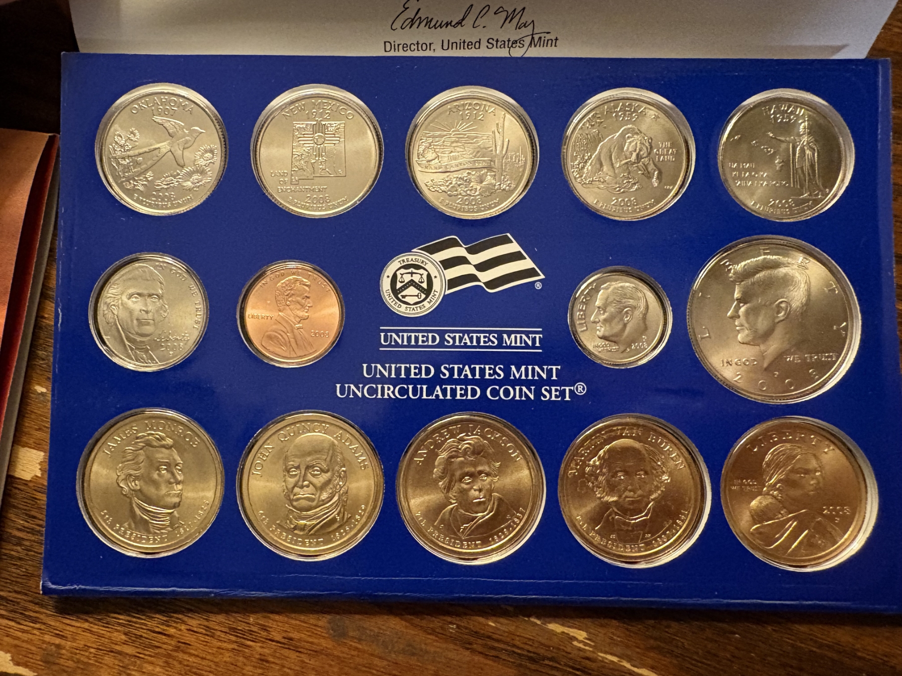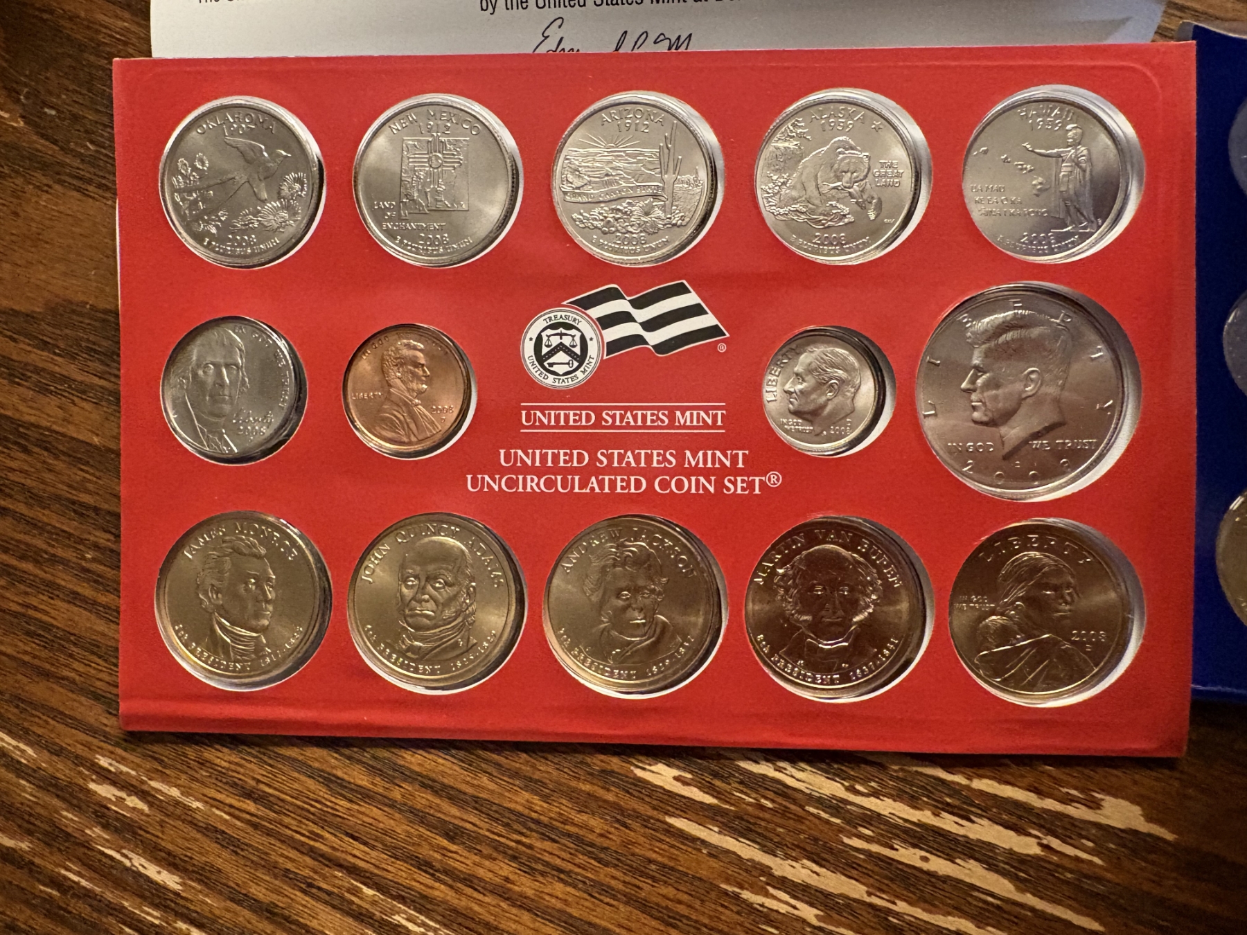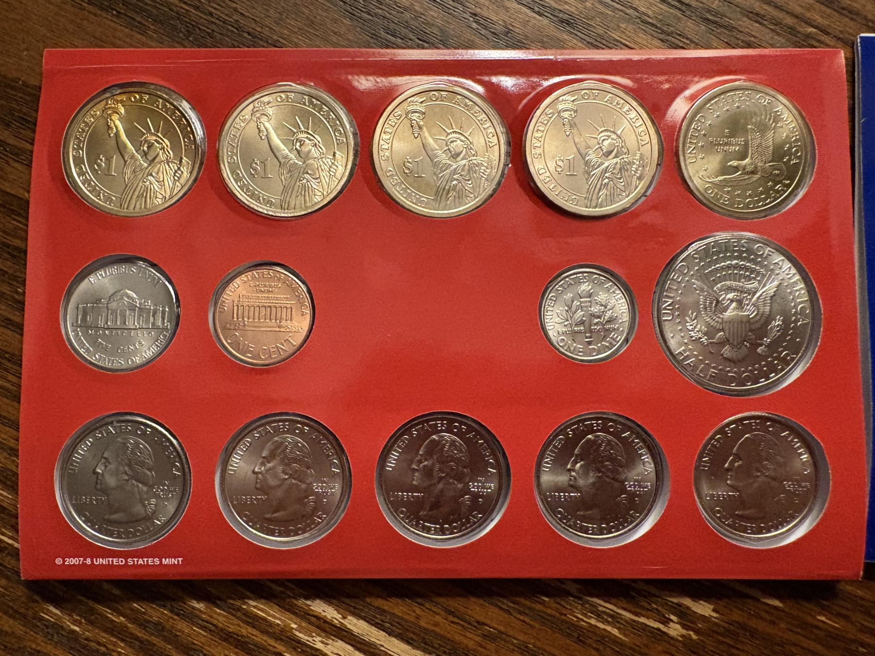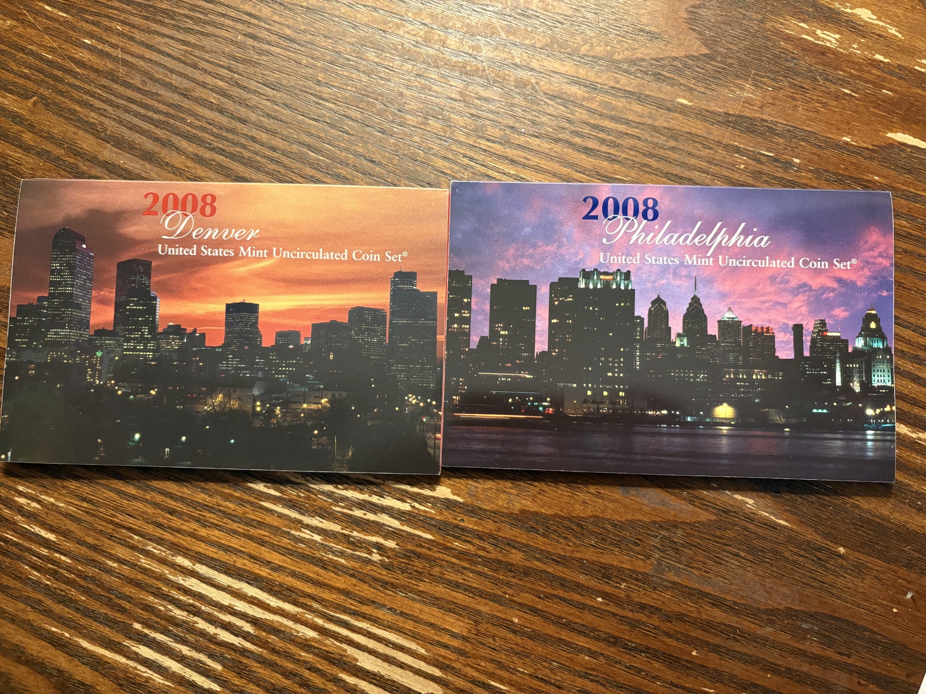 2008 U.S. Mint UNC Coin Sets - Philadelphia & Denver - FV $13.82 - Includes Presidential and Liberty Dollars - Kennedy Half Dollar - Quarters - Dimes - Nickels - Pennies - Certificate of Authenticity