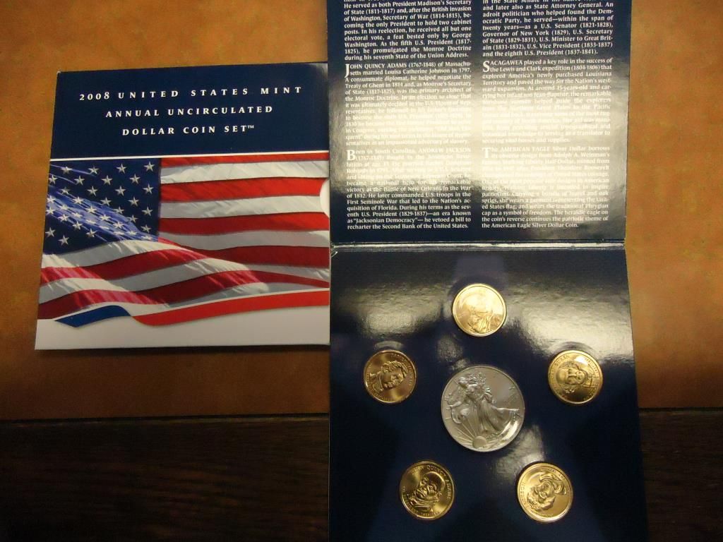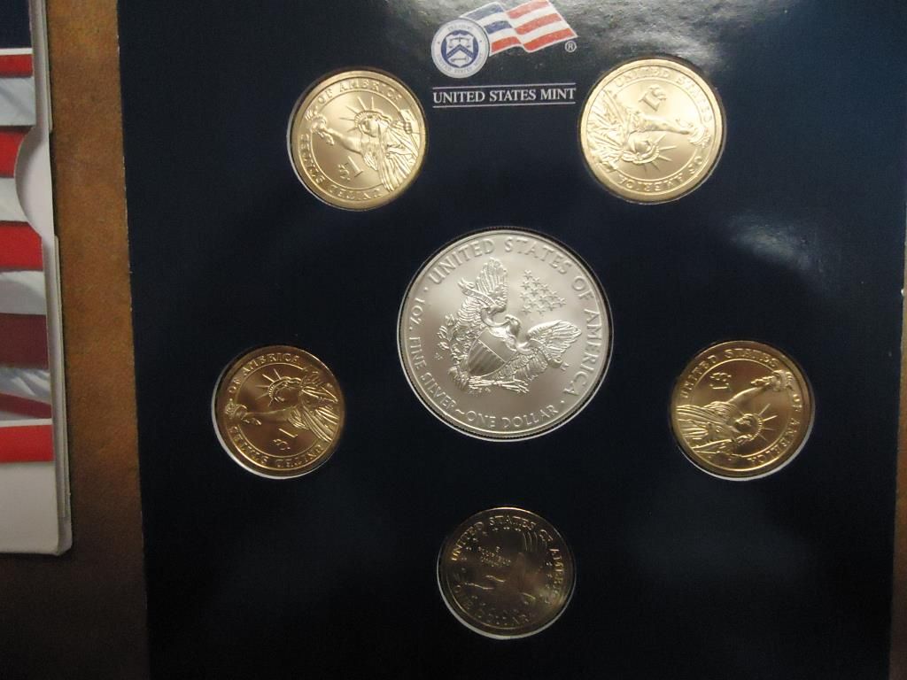 CONTAINS: 4 PRESIDENTIAL DOLLARS, SACAGAWEA DOLLAR AND AMERICAN SILVER EAGLE, ORIGINAL US MINT PACKAGING