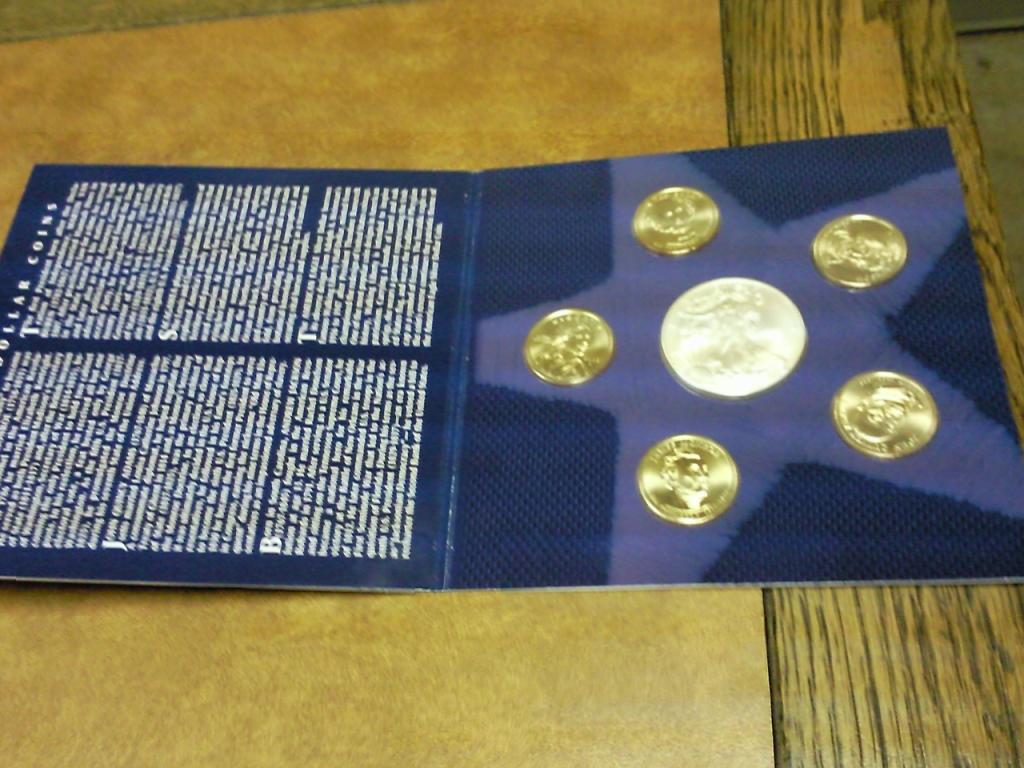 Contains: 4 Presidentail Dollars, 1 Sac. Dollar And 1-2008-W American Silver Eagle