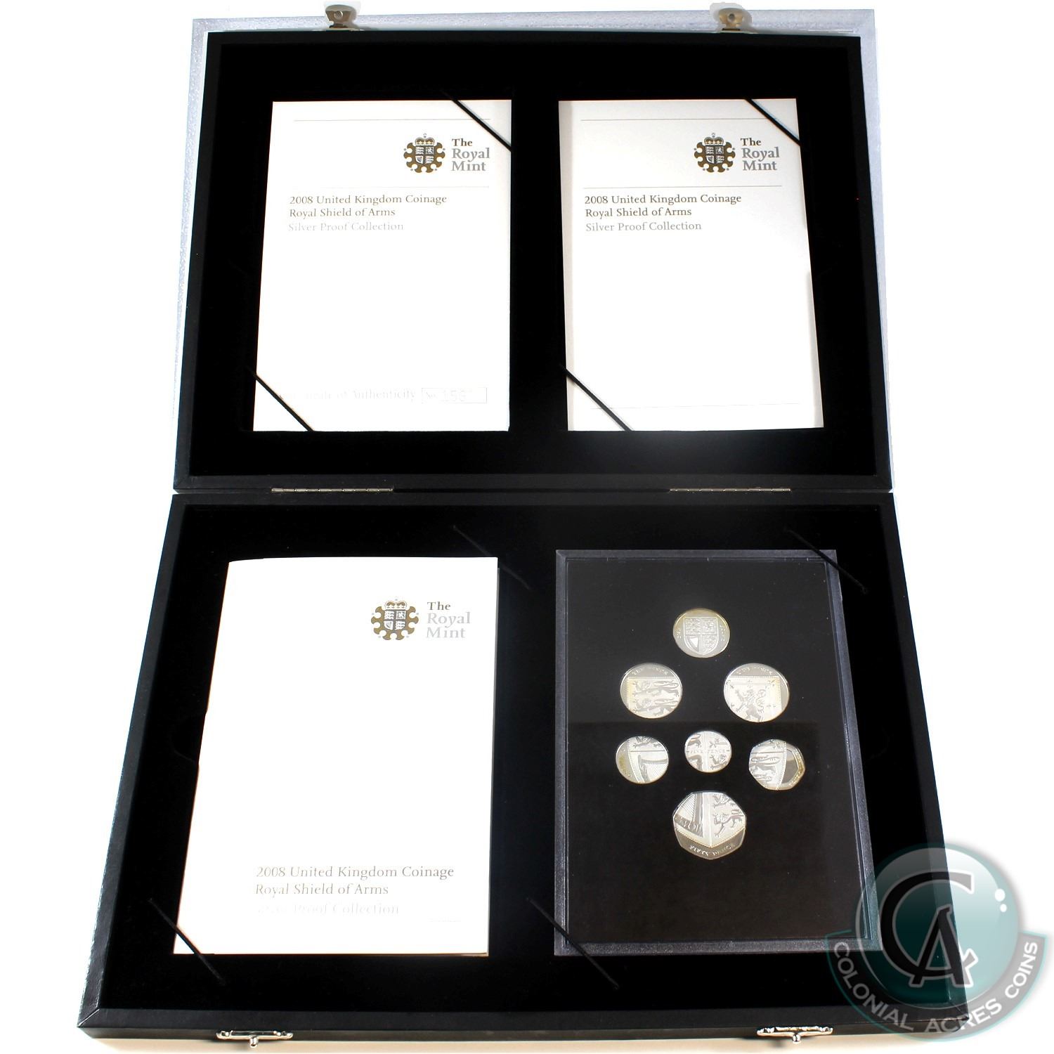 2008 United Kingdom Royal Shield of Arms 7-coin Silver Proof Collection. Please note coins are toned.