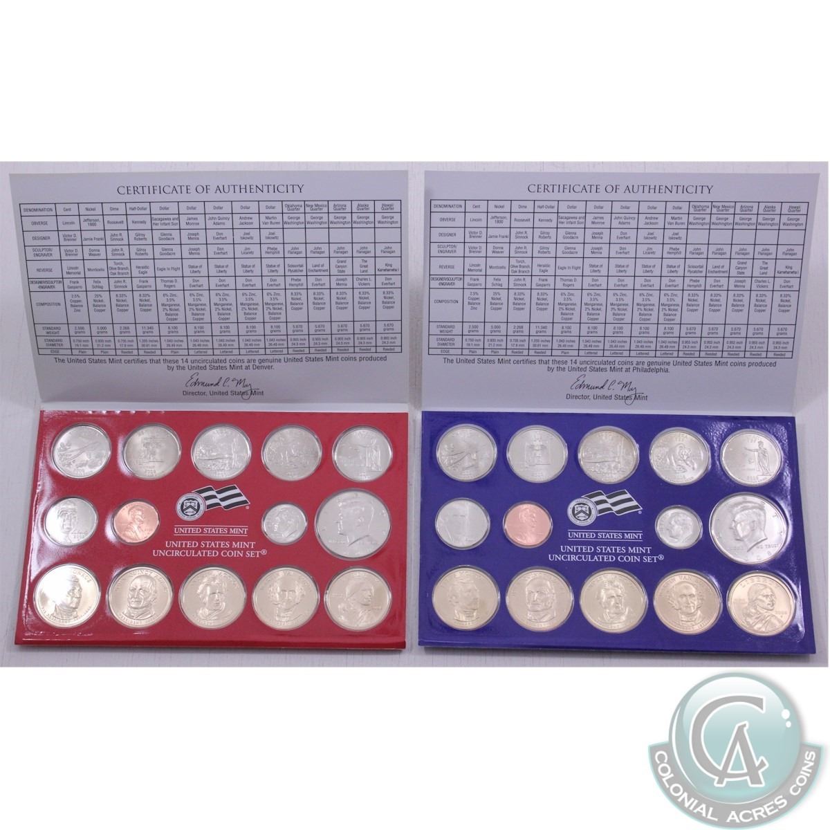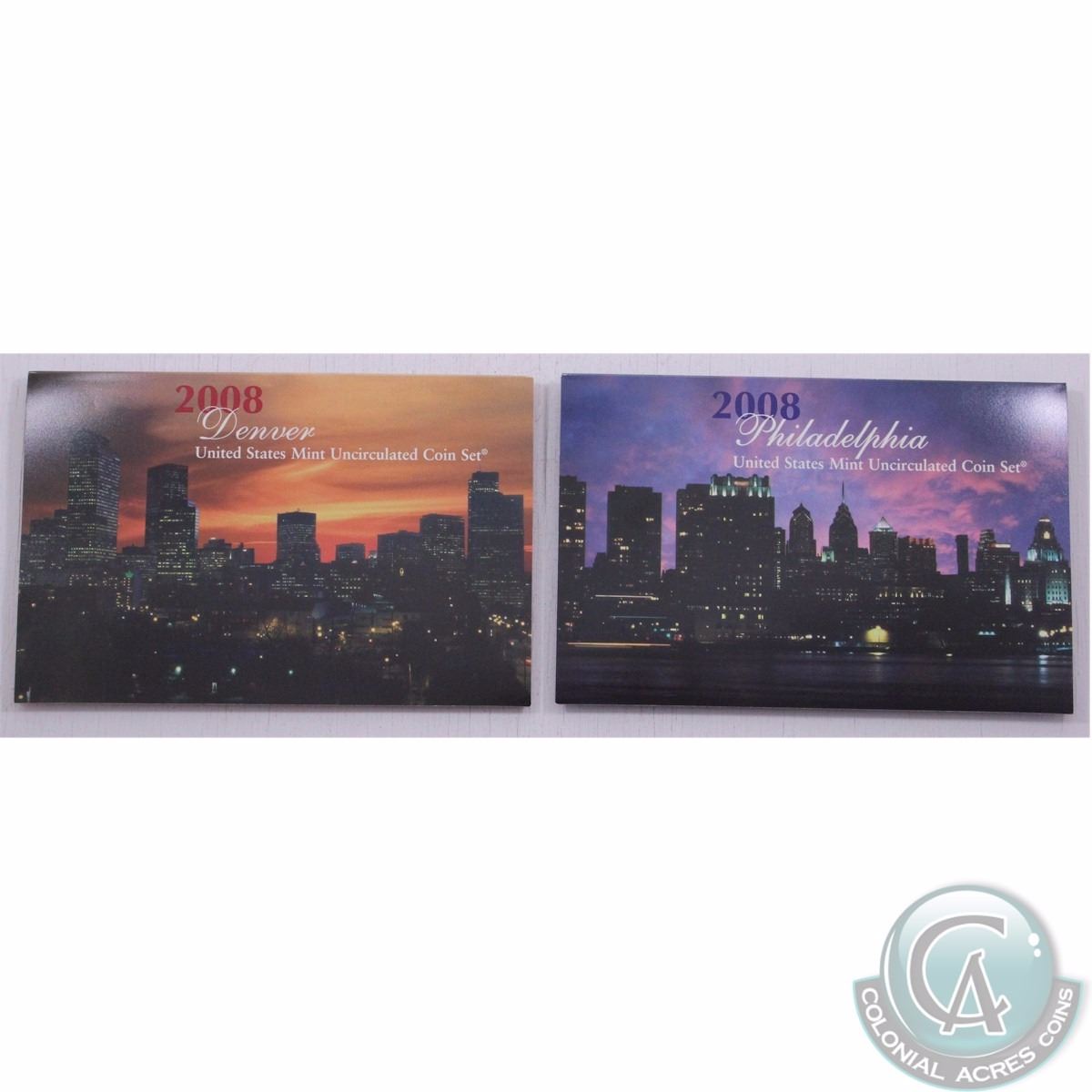 2008 United States Mint 14-coin Uncirculated Sets. You will receive both the Uncirculated Sets issued by the Philadelphia and Denver ("P & D") Mints in 2008. (2pcs)