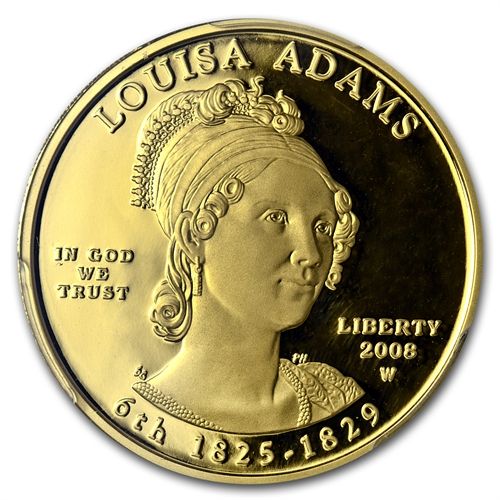 2008-W 1/2 oz Proof Gold Louisa Adams PR-70 PCGS DCAM **|**|** Year: 2008 ; Mint Mark: PR-70 DCAM ; Grade: W - West Point ; Denomination: $10 ; MSRP: $3100