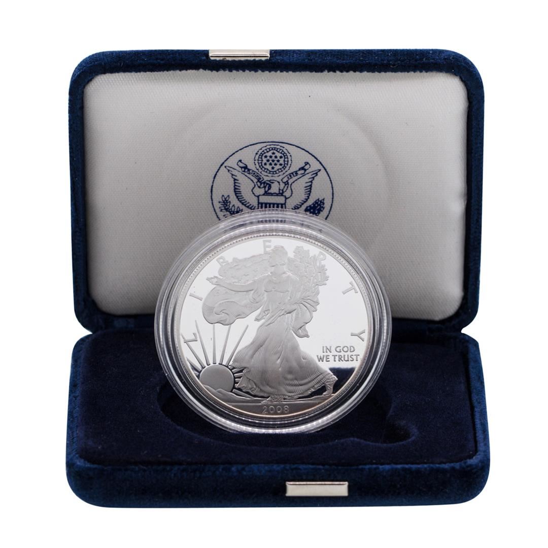One 2008-W $1 American Silver Eagle 1 oz Fine Silver Bullion Proof Coin w/Box.