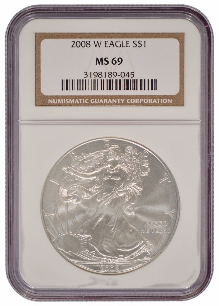 One 2008-W $1 American Silver Eagle Coin NGC MS69.