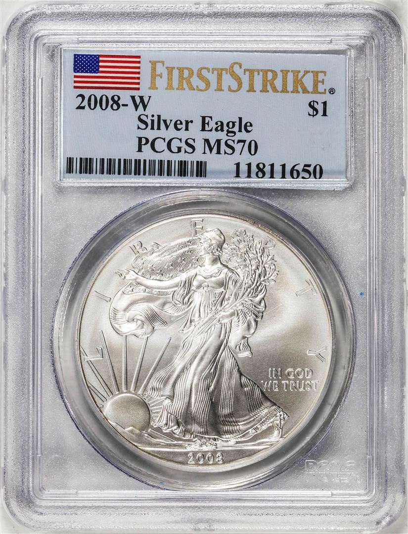 2008-W $1 Burnished American Silver Eagle Coin PCGS MS70 First Strike